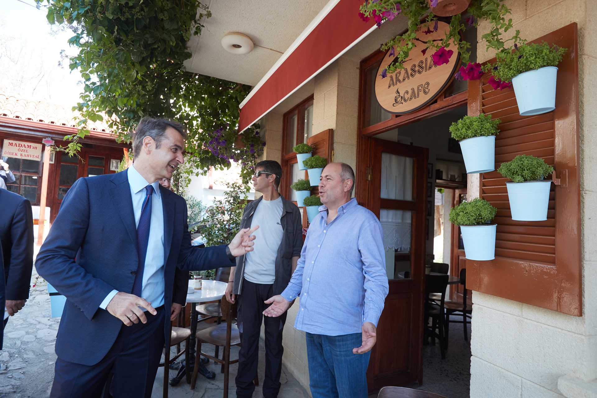 Ο Πρόεδρος της Ν.Δ. στη συνέχεια επισκέφθηκε την έδρα του Εκπαιδευτικού και Πολιτιστικού Συνδέσμου Ίμβρου (ιδρύθηκε το 2014), ο οποίος έχει τη διαχειριστική ευθύνη για τα ελληνικά σχολεία, ενώ μετά περπάτησε στους δρόμους της Παναγιάς και συνομίλησε με κατοίκους. Μάλιστα ένας συνταξιούχος τον ρώτησε «τι θα απογίνει με τις μειώσεις στις συντάξεις» και ο Πρόεδρος της Ν.Δ. του απάντησε ότι «μπορούμε να βάλουμε ένα φρένο σε αυτές τις μειώσεις».