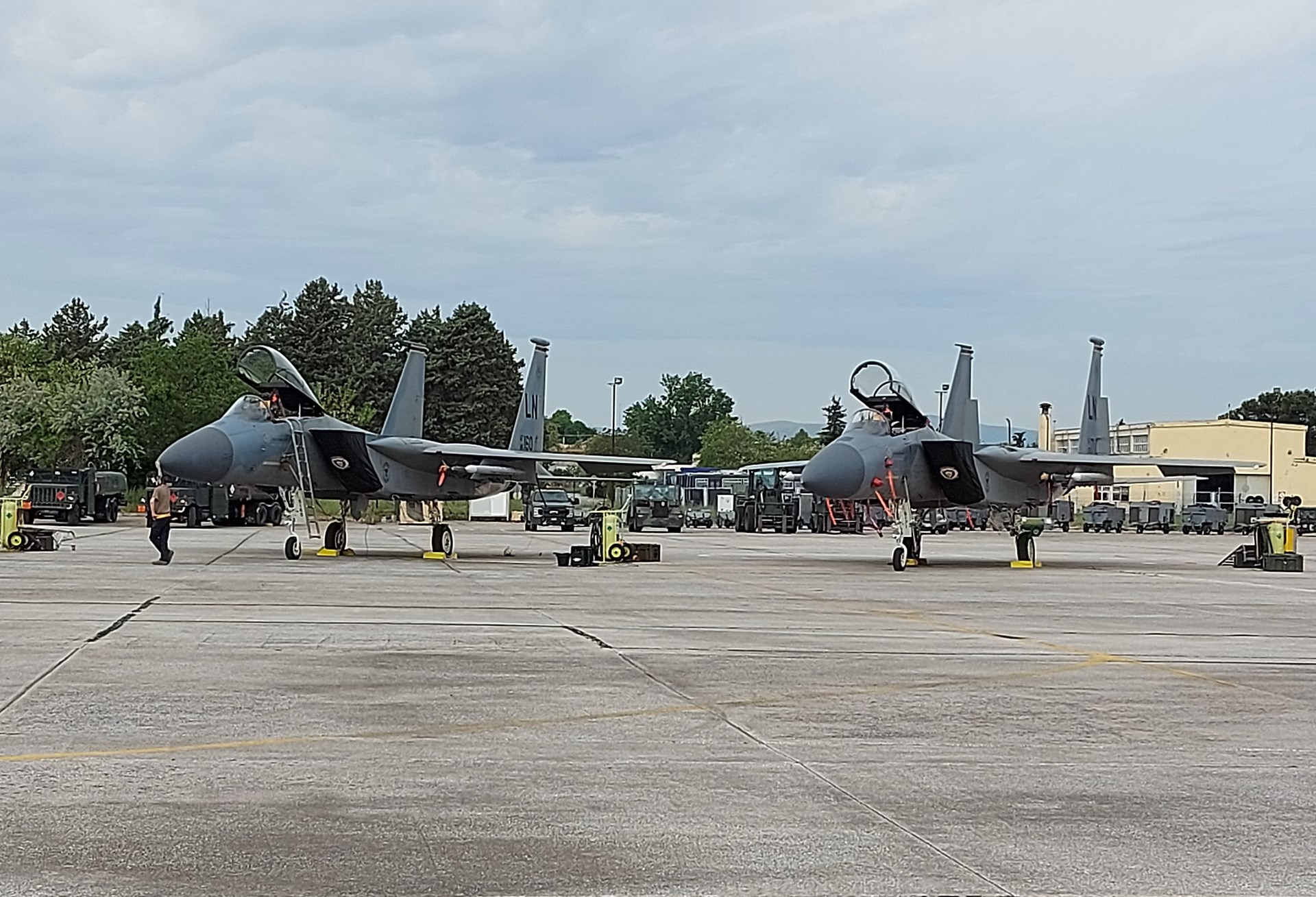 Έτσι, τη στιγμή που βρίσκεται σε εξέλιξη η μεγάλη «απόβαση» στην Αλεξανδρούπολη για την Defender Europe 21, στην 110 Πτέρυγα Μάχης, στην Λάρισα, προσγειώθηκαν 12 θηριώδη F-15.