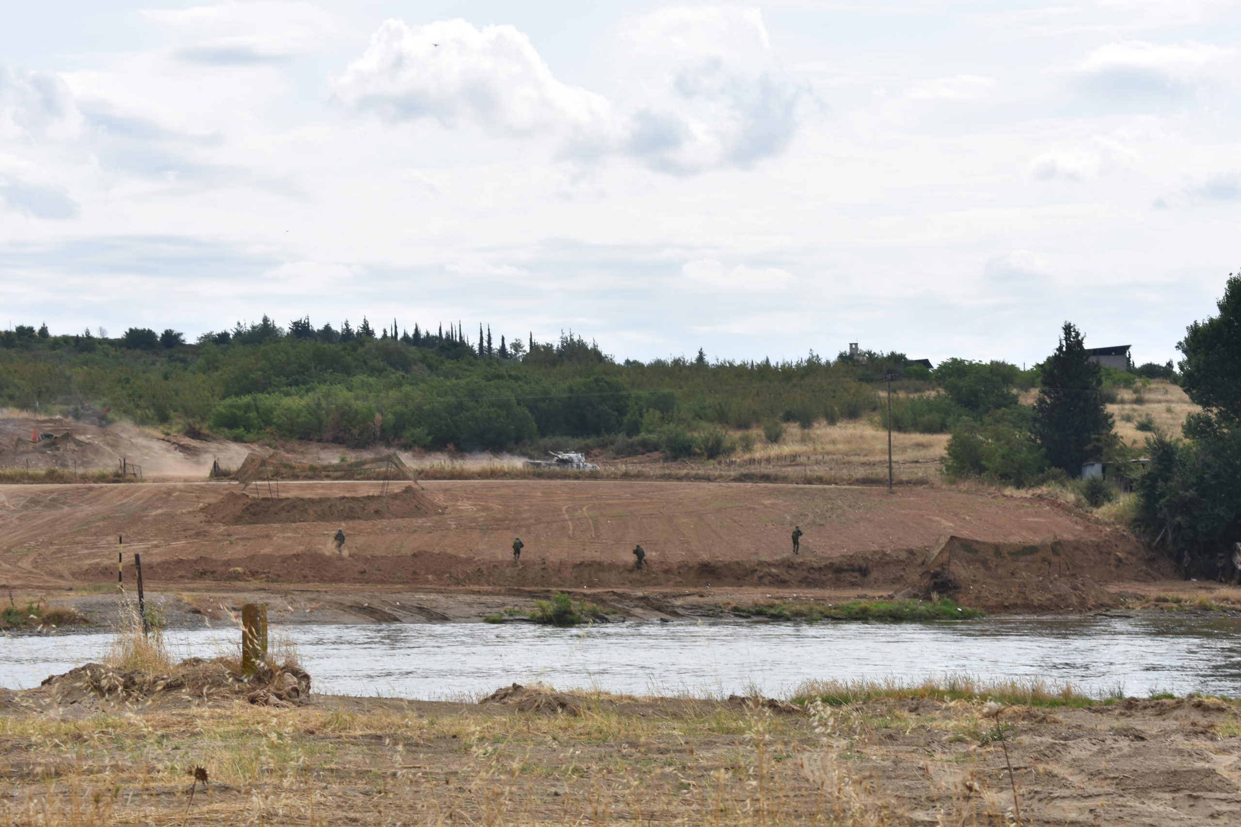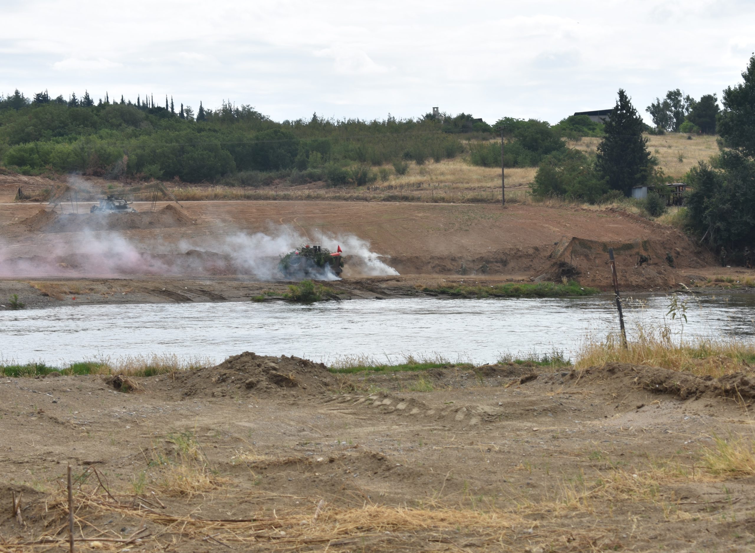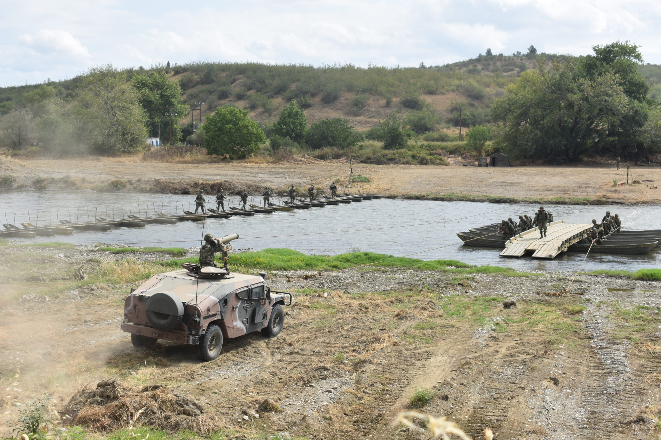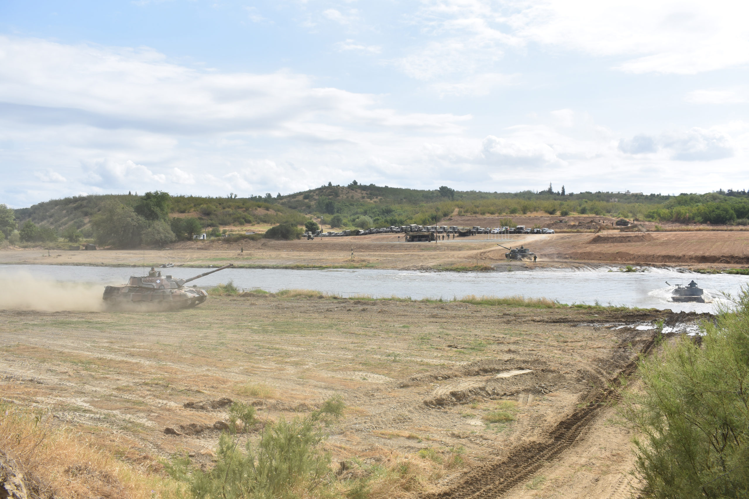 Στις φωτογραφίες που έδωσε το ΓΕΣ στη δημοσιότητα εντυπωσιάζει το καμουφλάζ των ελεύθερων σκοπευτών αλλά και τεχνικές που χρησιμοποιούνται από τα τεθωρακισμένα για τη διάβαση του ποταμού.