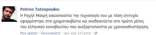 Με ανάρτησή του στο Facebook, ο Πέτρος Τατσόπουλος αναφέρθηκε στην Ραχήλ Μακρή.
