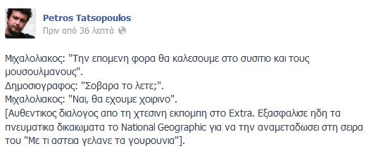 Με τη Χρυσή Αυγή “ξύπνησε” ο Πέτρος Τατσόπουλος. Ο βουλευτής του ΣΥΡΙΖΑ σχολίασε πριν από λίγο στη σελίδα του στο Facebook τα παρακάτω…