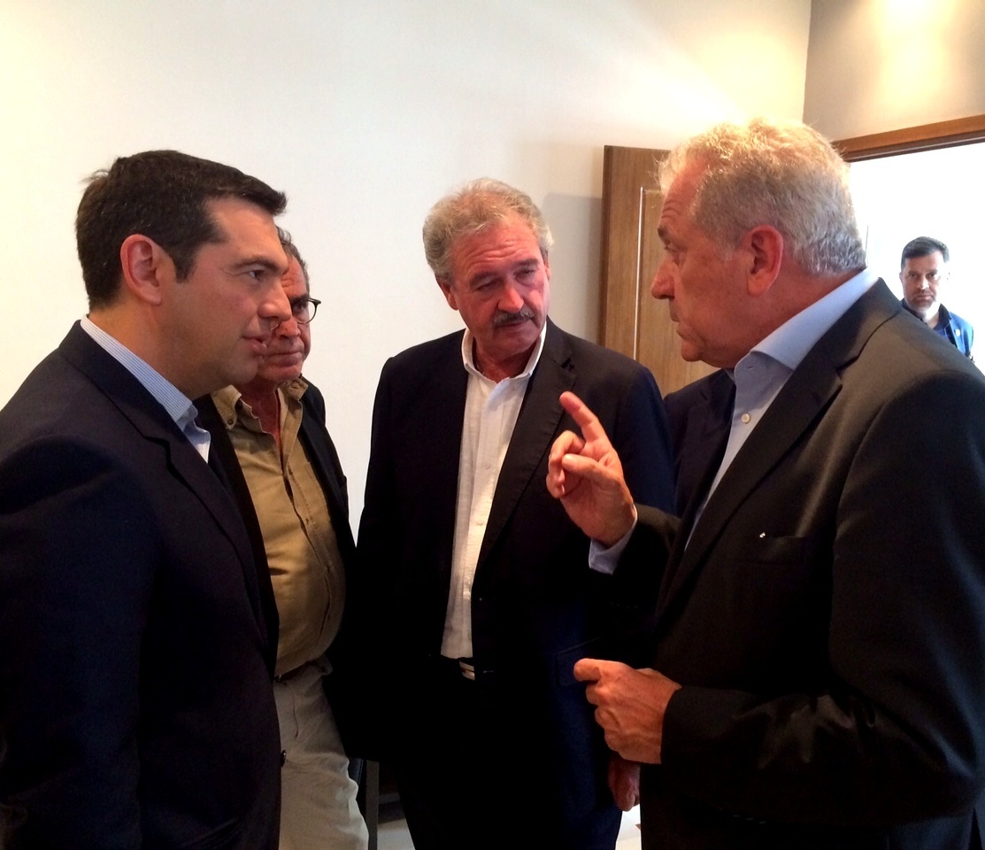 Η άφιξη του κ. Τσίπρα από τις Βρυξέλλες, συνέπεσε με την άφιξη του κ. Αβραμόπουλου, του Προεδρεύοντα του Συμβουλίου Υπουργών και Υπουργού Εξωτερικών και Ευρωπαϊκών Υποθέσεων του Λουξεμβούργου, κ. Άσελμπορν και του Αναπληρωτή Υπουργού Μεταναστευτικής Πολιτικής, κ. Μουζάλα από τη Λέσβο.