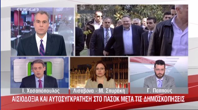 Ο Ιορδάνης Χασαπόπουλος είπε ότι στο ΠΑΣΟΚ είναι ικανοποιημένοι από τις δημοσκοπήσεις(!) και “ζητούν αυτοσυγκράτηση”! “Έχει μια δυναμική ο Βενιζέλος απέναντι στον Σαμαρά” συμπλήρωσε ο έμπειρος πολιτικός συντάκτης που μετέφερε “κλίμα” από την Ιπποκράτους. Να περιμένουμε και σαμπάνιες στις επόμενες δημοσκοπήσεις;