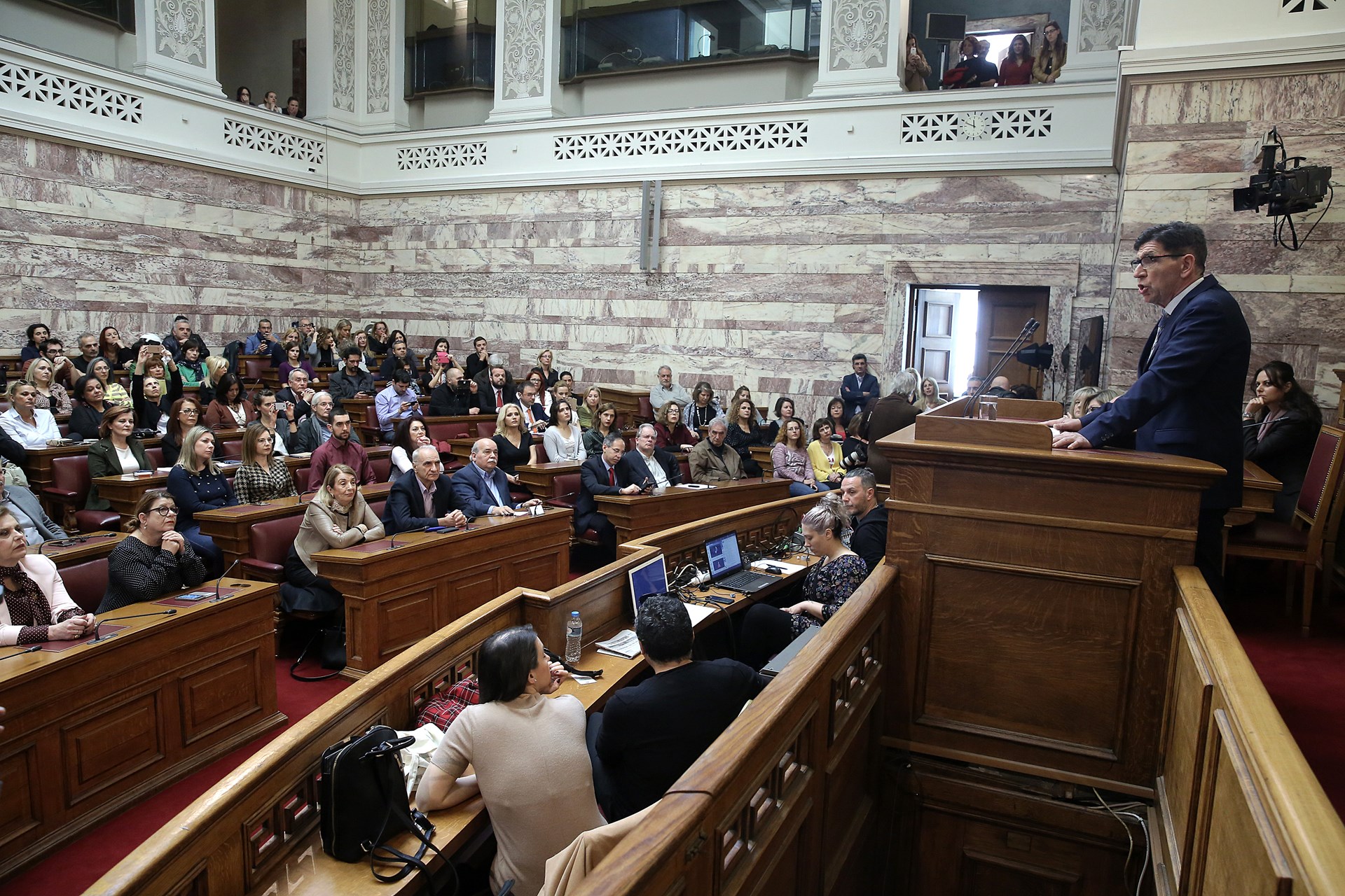 Την παράσταση παρακολούθησαν ο πρόεδρος της Βουλής Νίκος Βούτσης, οι αντιπρόεδροι Γιώργος Βαρεμένο, Τασία Χριστοδουλοπούλου και Σπύρος Λυκούδης, βουλευτές και υπάλληλοι της Βουλής.