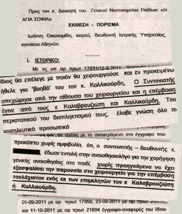 Τον Οκτώβριο μπήκε λουκέτο στο παιδοκαρδιοχειρουργικό κέντρο που βρίσκεται στο “Αγία Σοφία”, έπειτα από απόφαση του Ανδρέα Λοβέρδου, λόγω… καβγά των χειρουργών.Υπενθυμίζεται ότι ο υπουργός Υγείας κατήγγειλε την κακή συνεργασία των γιατρών, τονίζοντας ότι οι καρδιοχειρουργοί διαπληκτίστηκαν έντονα πάνω από το κεφάλι ενός ναρκωμένου παιδιού, το οποίο δεν υποβλήθηκε στην εγχείριση ποτέ, σύμφωνα με την εφημερίδα Δημοκρατία.Η εφημερίδα επικαλείται το πόρισμα της Ενορκης Διοικητικής Εξέτασης, το οποίο δεν αναφέρει ότι το παιδί δεν υποβλήθηκε στην επέμβαση, άρα κακώς έκλεισε το κέντρο με το παραπάνω, τουλάχιστον, αιτιολογικό.