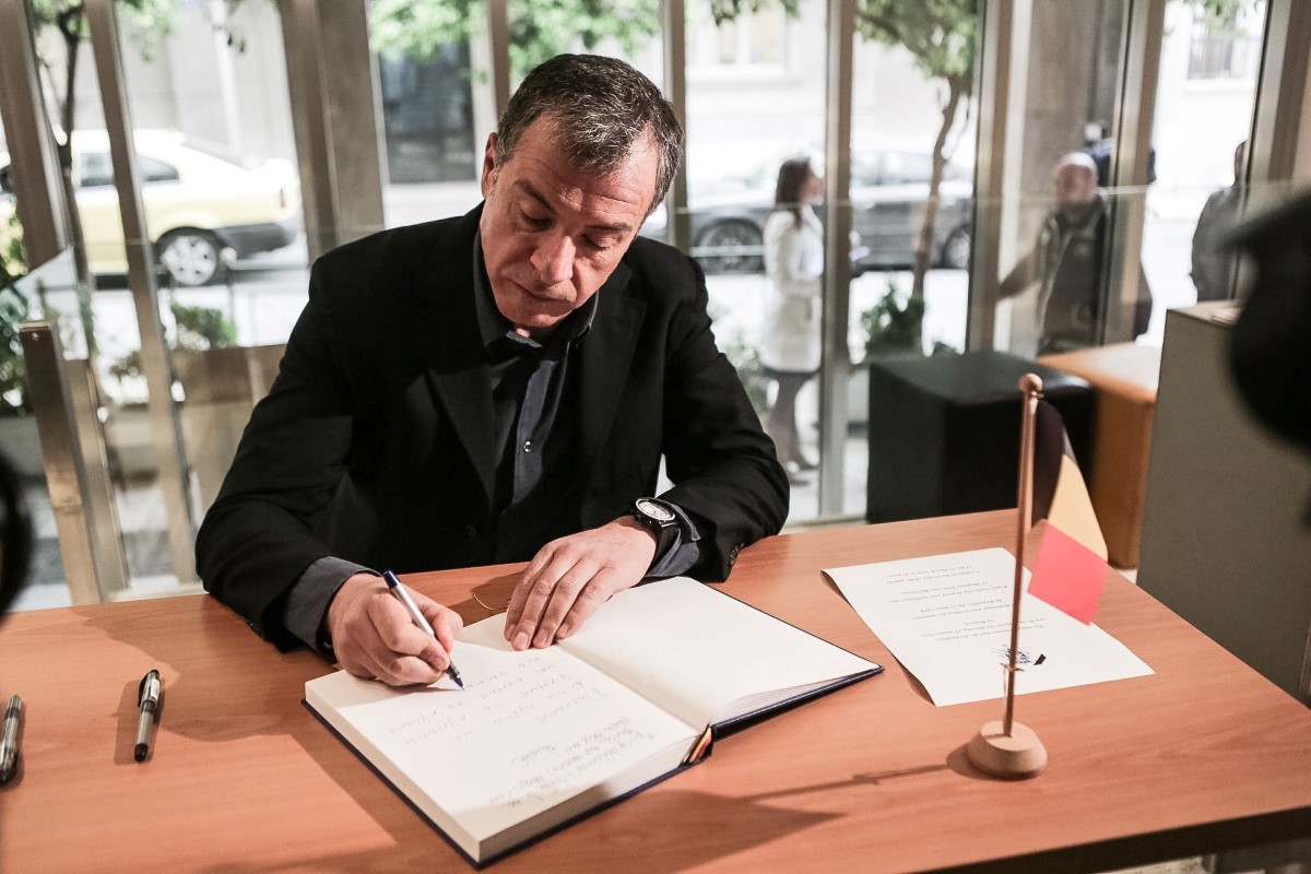 Την πρεσβεία του Βελγίου, στην Αθήνα, επισκέφθηκε ο Σταύρος Θεοδωράκης, προκειμένου να εκφράσει τα συλλυπητήριά του στον πρέσβη Λικ Λιεμπό, μετά τις τρομοκρατικές επιθέσεις που έγιναν στις Βρυξέλλες.