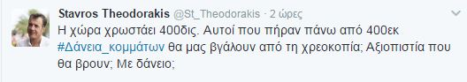 «Αξιοπιστία που θα βρουν; Mε δάνειο;» προσθέτει ο κ. Θεοδωράκης.