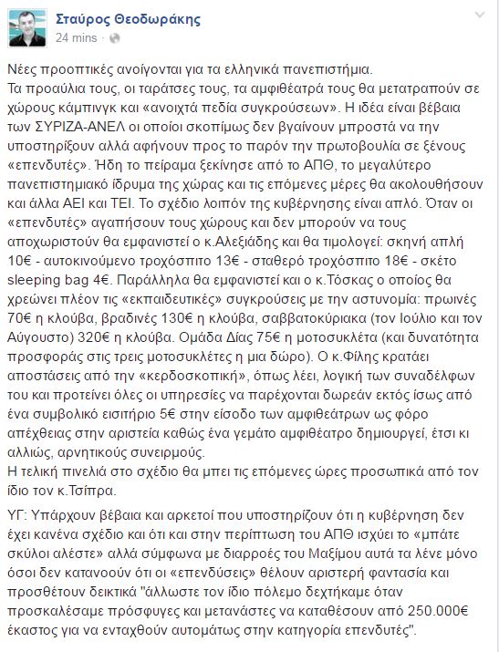 Ολόκληρη η ανάρτηση του κ. Θεοδωράκη: