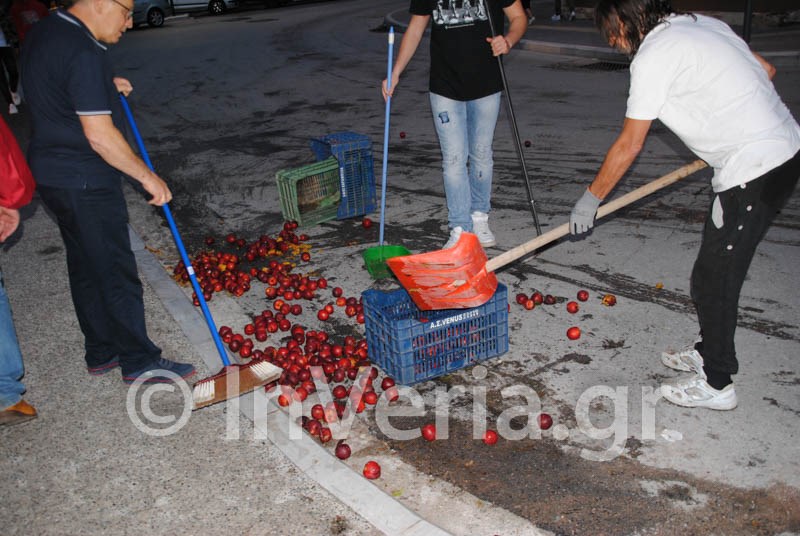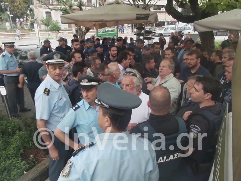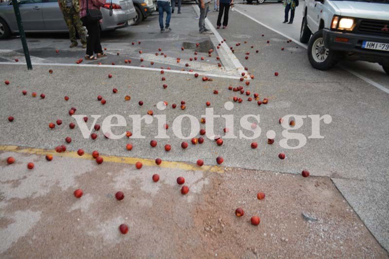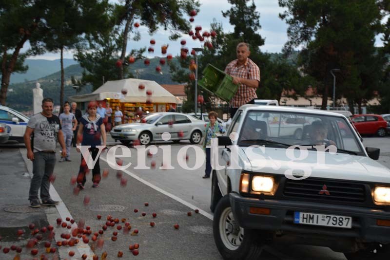 Μόλις το αντιλήφθηκαν οι συγκεντρωμένοι, εξοργίστηκαν και ζήτησαν να μπουν στην αίθουσα. Άλλωστε όπως είπαν, η εκδήλωση ήταν ανοιχτή και το θέμα τους αφορούσε άμεσα. Ακολούθησαν μικρής έντασης διαπληκτισμοί μεταξύ συγκεντρωμένων και αστυνομίας, ενώ οι αγρότες πέταξαν ροδάκινα στο δρόμο.