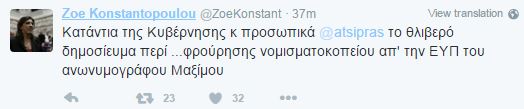 Για κατάντια της κυβέρνησης και προσωπικά του Αλέξη Τσίπρα κάνει λόγο, με ανάρτηση της στο twitter η πρώην πρόεδρος της Βουλής, Ζωή Κωνσταντοπούλου.