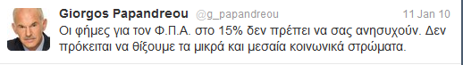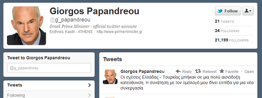 Δύσκολα πιστεύει κανείς ότι το προφίλ στο twitter ήταν πράγματι δικό του. Ας θυμηθούμε πως κελαηδούσε τότε: Giorgos o International: