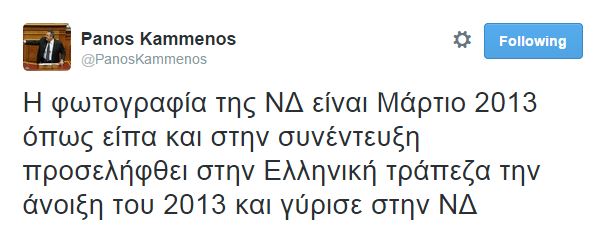 Ο ίδιος έγραψε χαρακτηριστικά στο twitter: “Η φωτογραφία της ΝΔ είναι Μάρτιο 2013 όπως είπα και στην συνέντευξη προσελήφθει στην Ελληνική τράπεζα την άνοιξη του 2013 και γύρισε στην ΝΔ”.