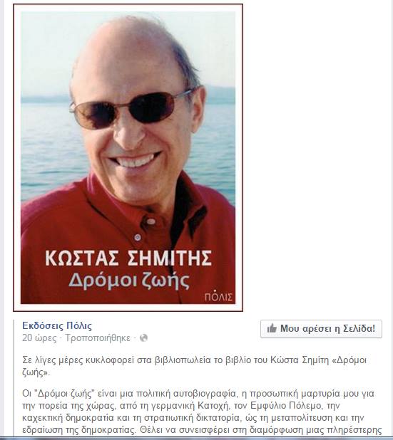 Σε λίγες μέρες κυκλοφορεί στα βιβλιοπωλεία το βιβλίο του Κώστα Σημίτη «Δρόμοι ζωής».
