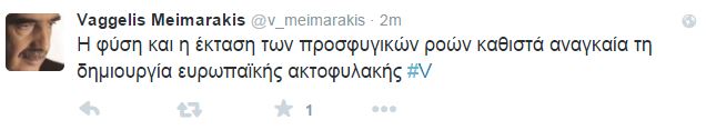 Τη δημιουργία ευρωπαϊκής ακτοφυλακής ζητά ο Βαγγέλης Μεϊμαράκης με μήνυμά του στο Twitter.