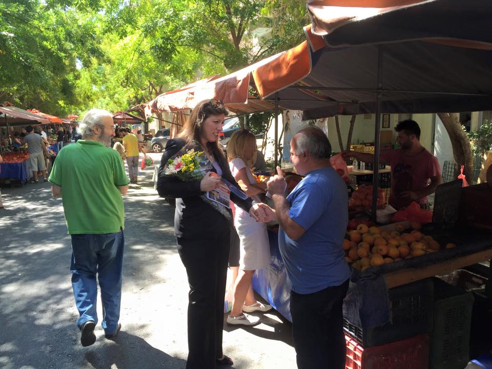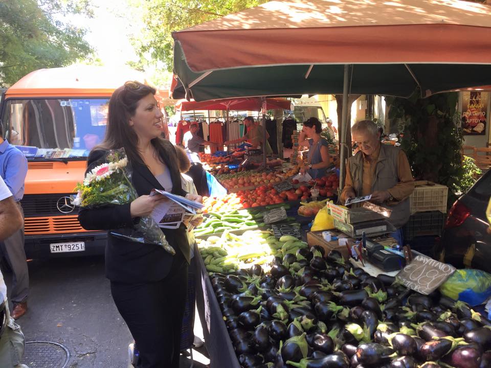 Βόλτα στη λαϊκή αγορά του Κολωνακίου βγήκε η Ζωή Κωνσταντοπούλου προκειμένου να μοιράσει φυλλάδια της Λαϊκής Ενότητας, ενόψει μάλιστα και της προεκλογικής της ομιλίας το βράδυ αρχικά στα Πετράλωνα και στη συνέχεια στα Προπύλαια.