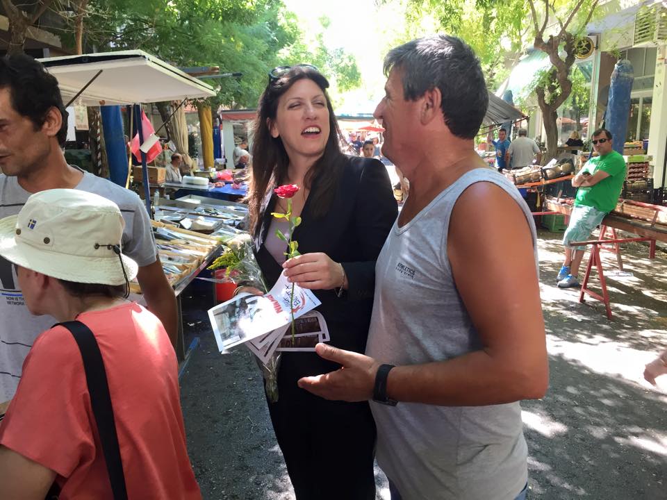 Η Ζωή Κωνσταντοπούλου, ιδιαίτερα χαμογελαστή πλησίασε στους πάγκους, συνομίλησε με παραγωγούς, δέχτηκε με χαρά τα λουλούδια που της προσέφεραν, αντάλλαξε χειραψίες ενώ δεν αρνήθηκε να βγάλει και selfie φωτογραφίες.