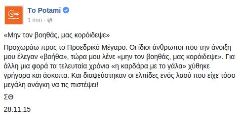 «Προχωράω προς το Προεδρικό Μέγαρο. Οι ίδιοι άνθρωποι που την άνοιξη μου έλεγαν «βοήθα», τώρα μου λένε «μην τον βοηθάς, μας κορόιδεψε». Για άλλη μια φορά τα τελευταία χρόνια «η καρδάρα με το γάλα» χύθηκε γρήγορα και άσκοπα. Και διαψεύστηκαν οι ελπίδες ενός λαού που είχε τόσο μεγάλη ανάγκη να τις πιστέψει!», έγραψε χαρακτηριστικά.