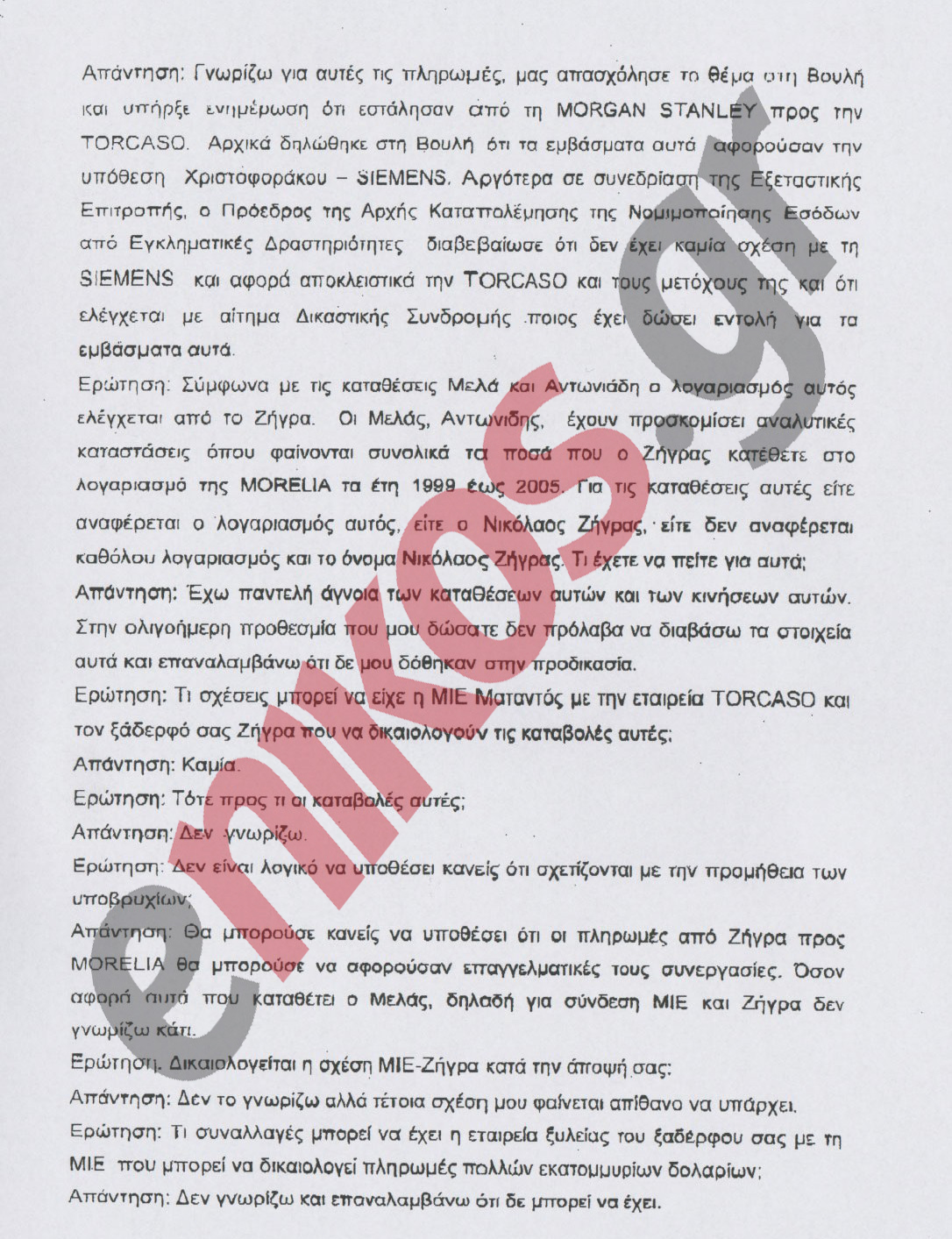 Η απολογία του εξαδέλφου του Άκη Ο εξάδελφος του πρώην υπουργού, Νίκος Ζήγρας θεωρείται το δεξί χέρι του πρώην υπουργού, αφού ήταν εκείνος που εμφανιζόταν ως δικαιούχος της off shore Torcaso που εμπλέκεται στην αγοραπωλησία του ακινήτου της Δ. Αρεοπαγίτου, αλλά και της Βluebell η οποία εμπλέκεται στην αγοραπωλησία της οικίας της Αρετής Τσοχατζοπούλου στο Κολωνάκι. Υπενθυμίζεται, ότι μεταξύ άλλων, σε λογαριασμό της εταιρείας Torcaso μεταφέρονται χρήματα από την off shore Morelia (που ανήκει στον κουμπάρο του κ. Ζήγρα), η οποία είχε λάβει ωφέλιμες πληρωμές από την εταιρεία Ferrostaal για την υπόθεση των υποβρυχίων.