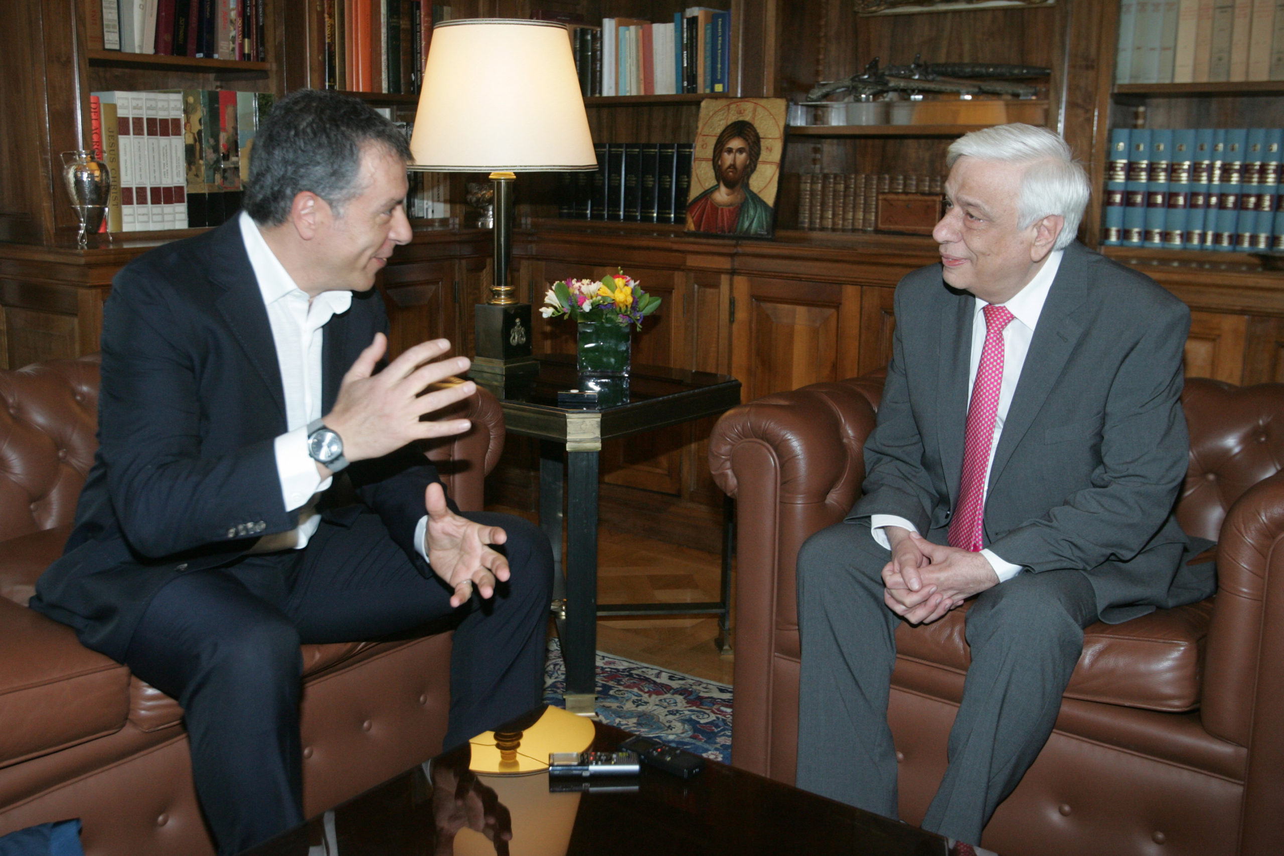 Στη διαβεβαίωση ότι θα κάνει τα πάντα, στα πλαίσια των αρμοδιοτήτων του, προκειμένου να παραμείνει η Ελλάδα στην Ευρώπη και στην Ευρωζώνη, προέβη ο Πρόεδρος της Δημοκρατίας Προκόπης Παυλόπουλος υποδεχόμενος στο Προεδρικό Μέγαρο τον επικεφαλής του «Ποταμιού» Σταύρο Θεοδωράκη.