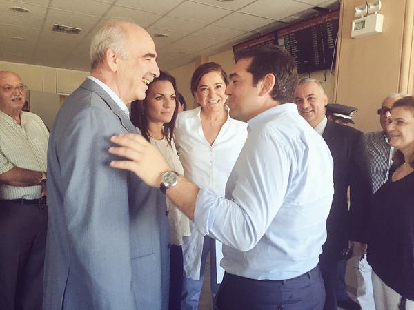 Οι δύο πολιτικοί αρχηγοί, βρέθηκαν μαζί στην αίθουσα VIP του αεροδρομίου καθώς η πτήση του κ. Μεϊμαράκη, έφτασε στο Ηράκλειο Κρήτης, την ώρα που ο κ. Τσίπρας περίμενε την δική του πτήση για να αναχωρήσει.