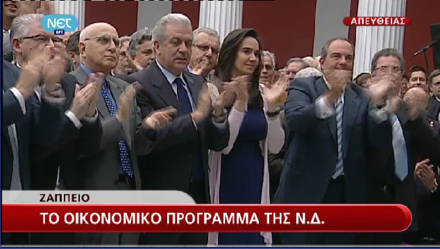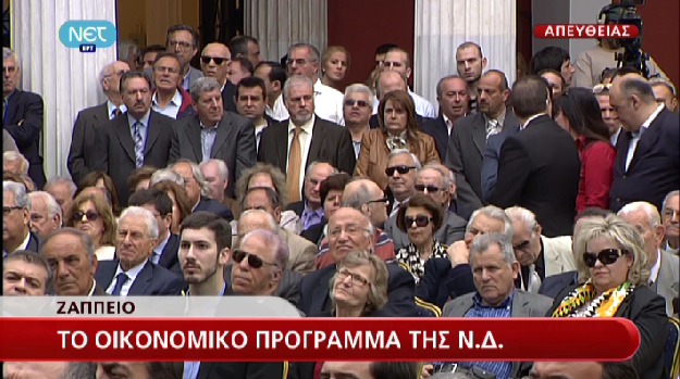 “Αύξηση του φόρου στα κέρδη από τα νέα ηλεκτρονικά παιγνίδια του ΟΠΑΠ Ακόμα ένα άλλο ισοδύναμο θα βρεθεί από τη μείωση ελλειμμάτων των ΔΕΚΟ Καθένα από αυτά τα <<ισοδύναμα>> μπορεί να δώσει πάνω από 300εκατομμύρια αμέσως Να θυμάστε ότι για να επανορθώσουμε αδικίες που απαιτούν 550εκατομμύρια, βρήκαμε ήδη διπλάσια ισοδύναμα” “Δανειολήπτες: Άμεση ανακούφιση είναι ότι δεν μπορεί η δόση των δανείων να ξεπερνά το 30% από το μηνιαίο εισόδημά τους” “Πού θα βρεθούν τα 11δισ περικοπών που θα χρειαστούν για τα επόμενα δύο χρόνια.Η απάντηση είναι απλή. Κυρίως από περικοπή σπατάλης” “Δεσμεύομαι να κάνω τα πάντα, ώστε να μην υπάρξουν τέτοιες οριζόντιες περικοπές ξανά” “Δεσμεύομαι ότι θα κάνω τα πάντα, ώστε οι περικοπές δαπάνης να γίνουν από τη σπατάλη που υπάρχει παντού” “Ο κίνδυνος εδώ δεν είναι να μειωθούν οι μισθοί απλά,αλλά να βρεθούν εκατοντάδες χιλιάδες άνθρωποι επί πλέον χωρίς δουλειά.” “Όχι ξανά μείωση μισθών,όχι νέοι φόροι,όχι νέα οριζόντια περικοπή στις συντάξεις,αλλά μείωση των απίστευτων σπαταλών του κράτους” “‘Ενα μέρος από την περιουσία του ΟΣΕ μπορεί να αξιοποιηθεί.Ώστε να φέρει επενδύσεις, θέσεις εργασίας και Ανάπτυξη” “Ό,τι μπορεί να ιδιωτικοποιηθεί, θα ιδιωτικοποιηθεί. Και πολλοί εκφράζουν ενδιαφέρον σήμερα. Γάλλοι, Ρώσοι, Κινέζοι και άλλοι” “‘Ο,τι έλλειμμα μπορεί να κοπεί από ζημιογόνες ΔΕΚΟ θα κοπεί” “Όταν μιλάμε για ιδιωτικοποιήσεις ΔΕΚΟ ή αξιοποίηση περιουσίας ΔΕΚΟ, δεν εννοούμε εκποίηση παραγωγικών μονάδων όσο-όσο” “H ιδιωτικοποίηση ιδιαίτερα της ενέργειας, απαιτεί στρατηγικό σχεδιασμό” “Πώς θα ξεκινήσει η Ανάκαμψη πιο νωρίς;Πρώτον, αξιοποιώντας τα κοινοτικά κονδύλια του ΕΣΠΑ” “Δεύτερον, εξασφαλίζοντας ρευστότητα που το ΠΑΣΟΚ στέγνωσε από την αγορά” “Και τρίτον, επιστρέφοντας τα 6,5 δισεκατομμύρια που χρωστά το δημόσιο σε επιχειρήσεις” ” Θα προχωρήσουμε σε συμβάσεις παραχώρησης υποδομών-που υπάρχουν,αλλά σήμερα υπολειτουργούν-όπως περιφερειακά λιμάνια&αεροδρόμια Ειδικά προγράμματα για την ανεργία των νέων, αλλά και για τη νεανική επιχειρηματικότητα Μέτρα για την Οικοδομή: 150 επαγγέλματα ζουν απ’ αυτή.Όμως η οικοδομική δραστηριότητα έχει πέσει σχεδόν στο μηδέν” “Με το που αρχίζει να υπάρχει ρευστότητα,το 1o μέτρο θα είναι η επιδότηση στεγαστικών δανείων πρώτης κατοικίας με 2% για 10χρόνια” “Τέτοια ανεργία, όπως η τωρινή, δεν αντέχει καμία κοινωνία.Και καμία Δημοκρατία” “Θα προχωρήσουμε σε χρονοδιάγραμμα μείωσης των φόρων” “Να ξεκινήσουμε με τη μείωση του φορολογικών συντελεστών των Νομικών προσώπων στο 15%” “Θα προχωρήσουμε ακόμα πιο πέρα: Φορολογική αμνήστευση για επιστροφή καταθέσεων” “Οριστική τακτοποίηση αυθαιρέτων με χωροταξικό σχεδιασμό, ώστε να είναι απόλυτα σύννομο” “Θα αντικαταστήσουμε το περιβόητο χαράτσι με ένα ενιαίο νόμο για ακίνητη περιουσία όπως το ΕΤΑΚ,που η κυβέρνηση του ΠΑΣΟΚ κατάργησεΟι αντικειμενικές αξίες δεν θα αυξηθούν! Πολύ περισσότερο που τώρα οι εμπορικές αξίες έχουν πέσει χαμηλότερα από τις αντικειμενικές.” “Πρέπει να αναπνεύσει η Μεσαία Τάξη που συντρίβεται από τους φόρους! Μην ξεχνάμε: Η Ελλάδα είναι χώρα νοικοκυραίων” “Θα δώσουμε άμεση προτεραιότητα & σε κάποιες κρίσιμες διαρθρωτικές αλλαγές.Χωρίς τις οποίες δεν μπορεί να προχωρήσει τίποτε άλλο” “Πρώτα το χτύπημα της γραφειοκρατίας:Από παντού: από τα πάνω και από τα κάτω.Μείωση της κυβέρνησης (άμεσ