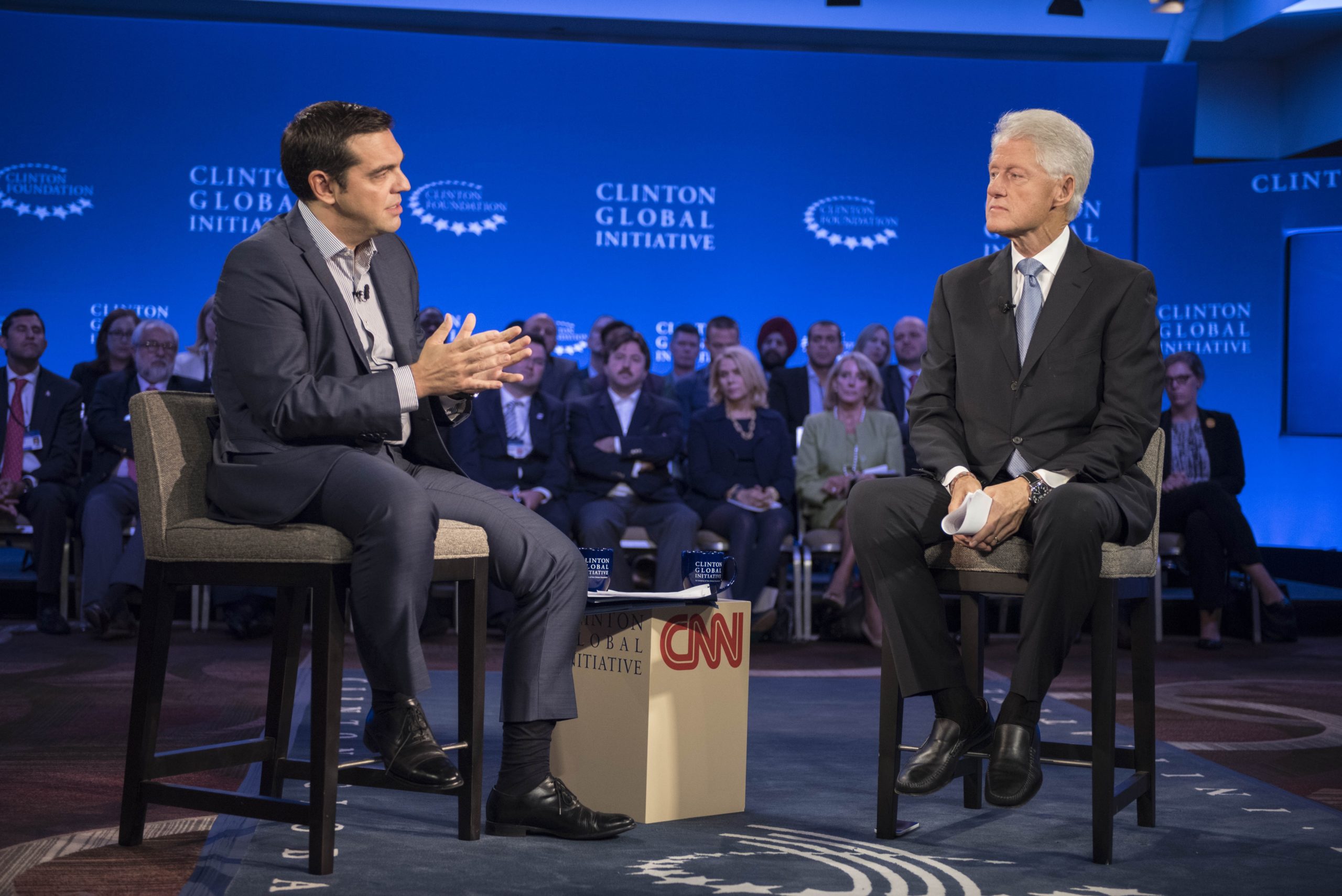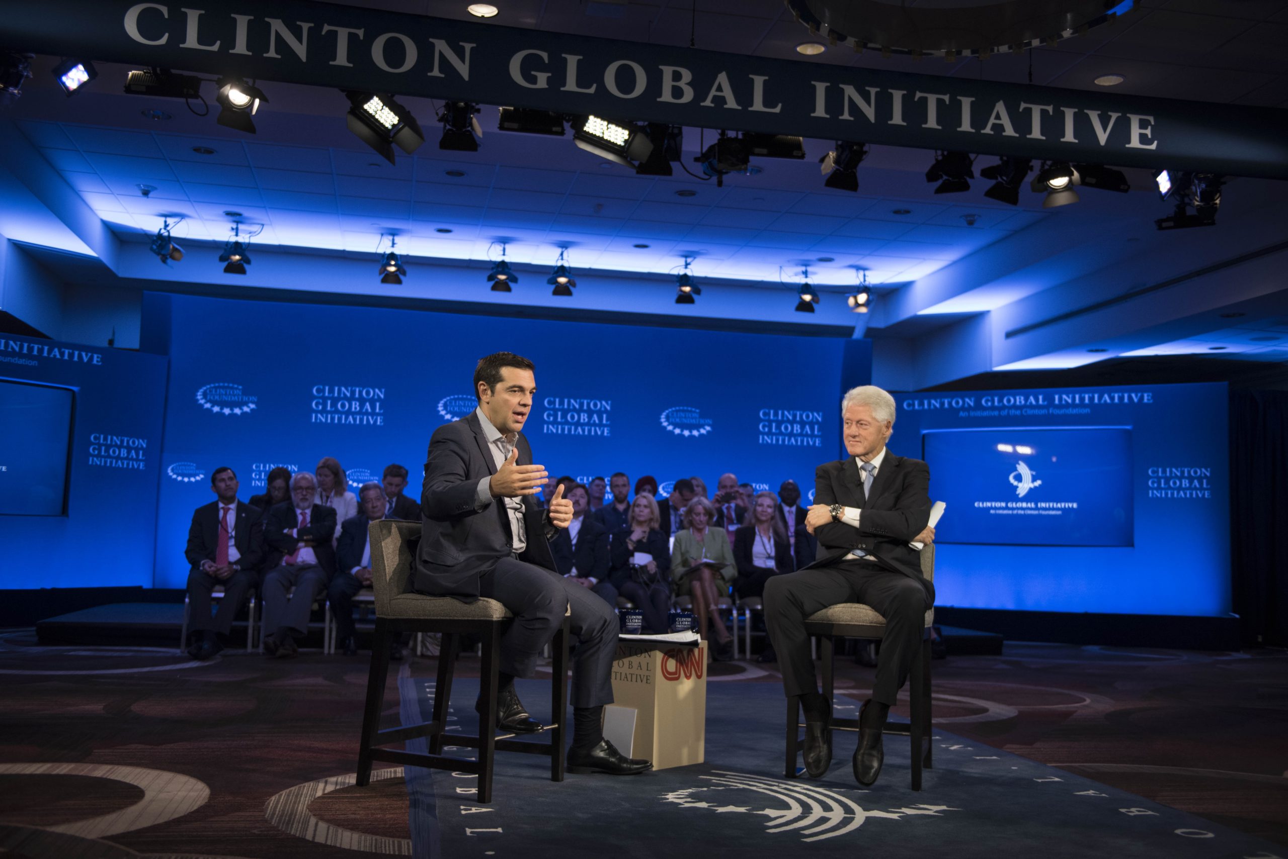 Ο Αλέξης Τσίπρας, απαντώντας σε ερωτήσεις του κ. Κλίντον, τόνισε ότι ο μόνος τρόπος για να υπερβεί την κρίση η χώρα μας, είναι να εισέλθει σε πορεία ανάπτυξης με κοινωνική συνοχή, και να αντιμετωπίσει το υψηλό ποσοστό ανεργίας και τη διαρροή του επιστημονικού δυναμικού της στο εξωτερικό.