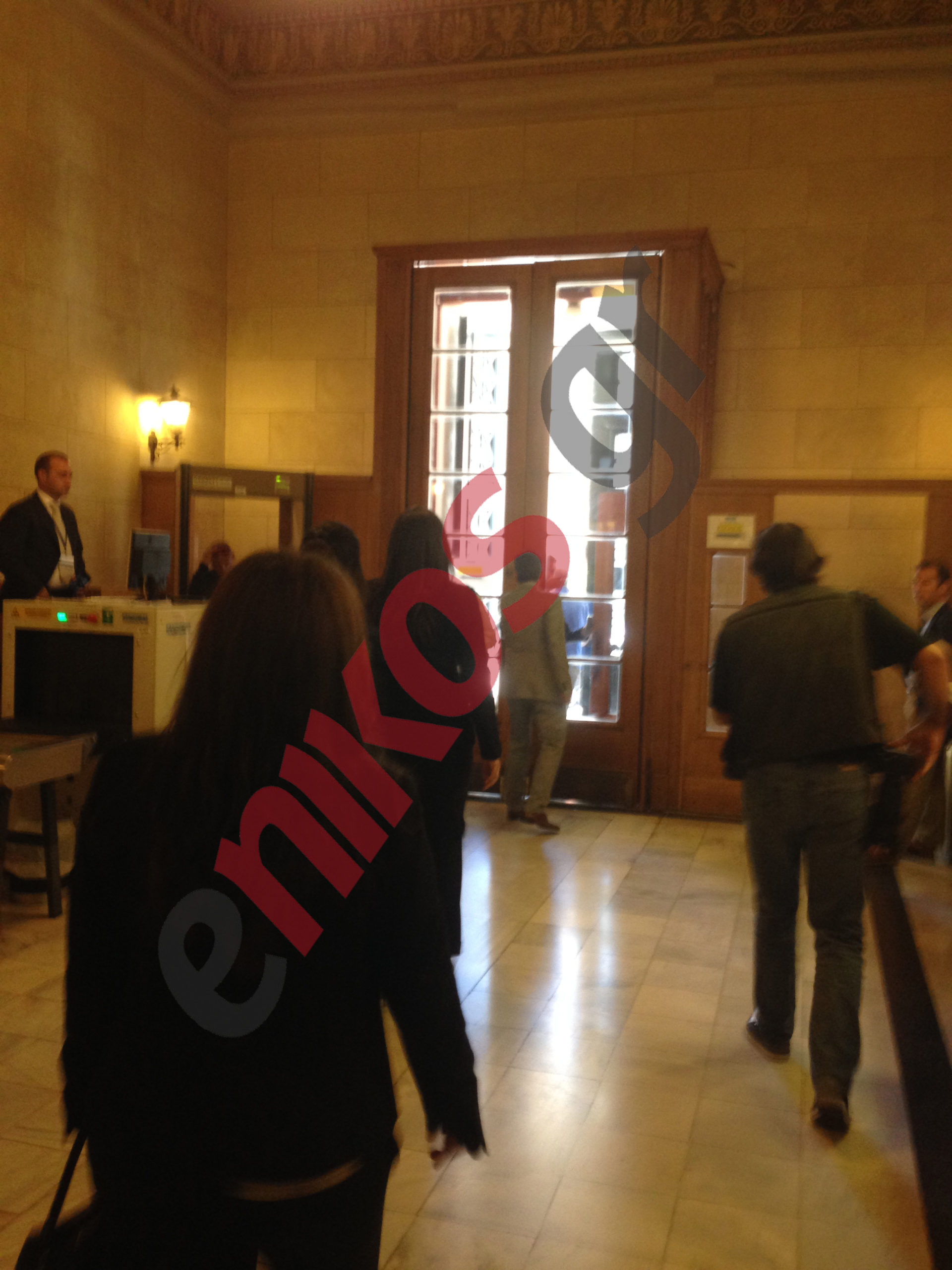 Κατά την έξοδό της, φάνηκε να οδεύει προς το γραφείο του πρωθυπουργού, Αλέξη Τσίπρα. Ωστόσο, την τελευταία στιγμή, έστριψε και κατευθύνθηκε προς την έξοδο.
