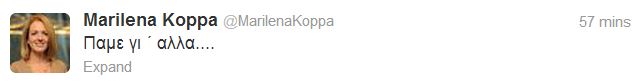 “Πάμε γι’ άλλα….” έγραψε η Μαριλένα Κοππά στο twitter.