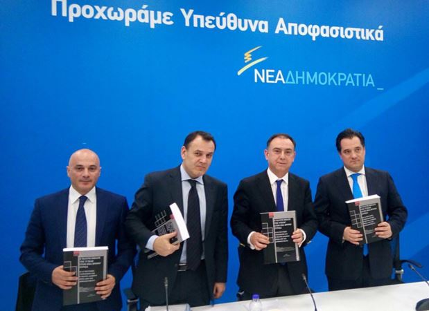 Τις βασικές προεκλογικές υποσχέσεις του ΣΥΡΙΖΑ για την υγεια, συγκεντρωμένες σε ένα βιβλίο, παρουσίασε ο αντιπρόεδρος της ΝΔ και πρώην υπουργός Υγείας Άδωνις Γεωργιάδης, μαζί με τον συντονιστή Κοινωνικών Υποθέσεων της ΝΔ, Νίκο Παναγιωτοπουλο, και τον τομεάρχη Υγείας, Χρήστο Κέλα.