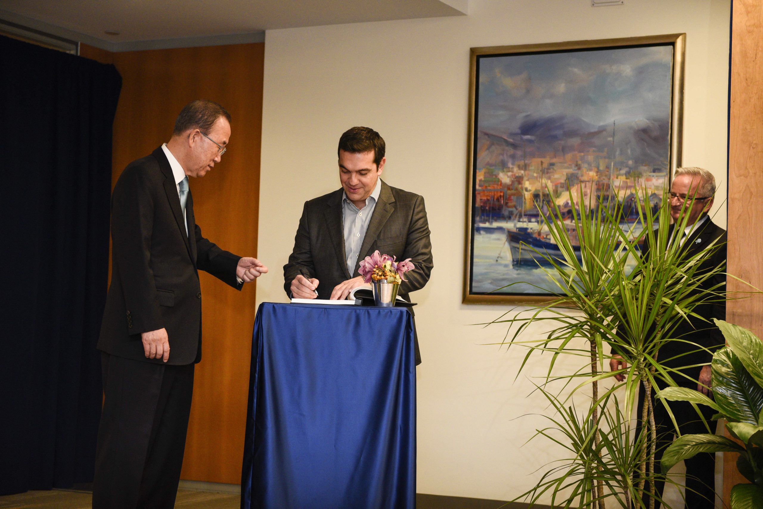Σύμφωνα με εκπρόσωπο του γγ του ΟΗΕ, ο γγ και ο πρωθυπουργός συζήτησαν την αυξημένη κίνηση προσφύγων και μεταναστών προς την Ευρώπη και τις προσκλήσεις που αντιμετωπίζει η Ελλάδα σε σχέση μ’ αυτό.