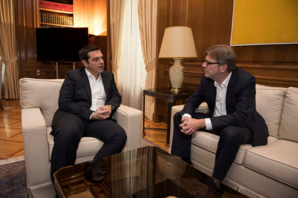 Στο προσφυγικό ζήτημα επικεντρώθηκε η συζήτηση που είχαν ο Αλέξης Τσίπρας και ο πρόεδρος της ομάδας της Συμμαχίας Φιλελεύθερων και Δημοκρατών στο Ευρωπαϊκό Κοινοβούλιο, Γκι Φερχόφστατ, τον οποίο υποδέχτηκε ο Πρωθυπουργός το μεσημέρι, στο γραφείο του στο Μέγαρο Μαξίμου.