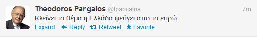 Τι θέλει να πει ο Πάγκαλος; Enikos Newsroom 10:28, Τρίτη 27 Νοεμβρίου 2012 πολιτική Τι θέλει να πει ο Πάγκαλος; Ανάρτηση που… προβληματίζει έκανε πριν από λίγο στο twitter ο Θεόδωρος Πάγκαλος. TWITTER ΘΕΟΔΩΡΟΣ ΠΑΓΚΑΛΟΣ Μοιράσου το: σχολίασε κι εσύ (0 σχόλια) Ακολουθήστε το enikos.gr στο Google News και μάθετε πρώτοι όλες τις ειδήσεις Δείτε όλες τις τελευταίες ειδήσεις από την Ελλάδα και τον Κόσμο στο enikos.gr Ειδήσεις Ροή Ειδήσεων 4 ώρες πριν Χριστούγεννα στα μπλόκα: Επιμένουν στις κινητοποιήσεις τους οι αγρότες – Ανοίγουν τα διόδια το Σαββατοκύριακο 5 ώρες πριν Ουκρανία: Η άνευ προηγουμένου επίθεση σε ρωσικό τάνκερ στη Μεσόγειο και το μήνυμα προς στον Πούτιν – Το «μακρύ χέρι» του Κιέβου 4 ώρες πριν Πούτιν: Τα μηνύματα σε Ευρώπη και ΝΑΤΟ από το μαραθώνιο «σόου» του – Η απαίτηση για «σεβασμό» και η ειρήνη «με τους όρους» της Μόσχας 5 ώρες πριν Τραμπ: Δεν αποκλείει την πιθανότητα ενός πολέμου στη Βενεζουέλα – «Ο Μαδούρο ξέρει καλύτερα από τον καθένα τι ακριβώς θέλω» 5 ώρες πριν Συνεχίζει να προκαλεί ο Μίτσκοσκι: «Για μένα το όνομα Μακεδονία είναι ιερό» 4 ώρες πριν Ανακαλύφθηκαν αρχαία χρυσά νομίσματα 2.200 ετών που απεικονίζουν τον θεό Απόλλωνα – Η άγνωστη σύνδεση με τον Φίλιππο Β΄ της Μακεδονίας 5 ώρες πριν Ύπνος: Μια κρυφή κατάσταση του εγκεφάλου πριν από τον ύπνο μπορεί να είναι το “κλειδί” για υψηλή ευφυΐα και δημιουργικότητα 6 ώρες πριν Αριθμολογία: Οι άνθρωποι που έχουν γεννηθεί αυτές τις 4 ημερομηνίες, συχνά παρεξηγούνται – «Η καλοσύνη τους κρύβει τεράστια δύναμη» 7 ώρες πριν Ξεχάστε το καθάρισμα το Σαββατοκύριακο: Ο «κανόνας των 20 λεπτών» που θα σας λύσει τα χέρια 22 λεπτά πριν Θεσσαλονίκη: Εξαφανίστηκε 13χρονος από χώρο φιλοξενίας ασυνόδευτων ανηλίκων στο Ωραιόκαστρο 32 λεπτά πριν Ντόναλντ Τραμπ: «Πολύ βαριά αντίποινα» στη Συρία – «Πλήττουμε πολύ δυνατά οχυρά του Ισλαμικού Κράτους» 47 λεπτά πριν Εξάρχεια: Ένταση με μολότοφ, χημικά και κρότου λάμψης 1 ώρα πριν ΗΠΑ: Τραγωδία στην Αλαμπάμα – Σκότωσε την δημοσιογράφο σύζυγό του και αυτοκτόνησε μπροστά στον 3χρονο γιο τους 1 ώρα πριν Πρόταση γάμου στο ΣΕΦ κατά την διάρκεια του αγώνα Ολυμπιακός-Βιλερμπάν – Δείτε βίντεο ENIKOS NETWORK Το ΕΚΑΒ τιμήθηκε από την Ακαδημία Αθηνών για τα 40 χρόνια προσφοράς του Έχετε πραγματικά μεγάλη καρδιά; 10 χαρακτηριστικά όσων έχουν καλοσύνη Αναστολή μέτρων αναγκαστικής εκτέλεσης για κτηνοτρόφους που πλήττονται από την ευλογιά των αιγοπροβάτων Πλήρης επάρκεια προϊόντων στις λαϊκές της Αττικής, παρά τις αγροτικές κινητοποιήσεις – Τι απαντούν οι πωλητές Χαρτογραφώντας το «σημείο χωρίς επιστροφή»: Για πρώτη φορά αποκαλύπτεται με λεπτομέρεια το ακανθώδες όριο της ατμόσφαιρας τ... Η Google καταργεί τη λειτουργία «dark web report» – Πώς θα μπορούν οι χρήστες να διαγράφουν τα δεδομένα τους περισσότερα 21:30 , Παρασκευή 19 Δεκεμβρίου 2025 Συνεχίζει να προκαλεί ο Μίτσκοσκι: «Για μένα το όνομα Μακεδονία είναι ιερό» Ο πρωθυπουργός της Βόρειας Μακεδονίας, Χρίστιαν Μίτσκοσκι, δήλωσε σήμερα ότι για τον ίδιο, το ... 21:11 , Παρασκευή 19 Δεκεμβρίου 2025 Ανδρέας Λυκουρέντζος: Υπέβαλε την παραίτησή του ο πρόεδρος του ΕΛΓΑ, αλλά δεν έγινε δεκτή – Όλο το παρασκήνιο Την παραίτησή του στους Κώστα Τσιάρα και Κωστή Χατζηδάκη υπέβαλε ο πρόεδρος του ΕΛΓΑ Ανδρέας Λ... 16:23 , Παρασκευή 19 Δεκεμβρίου 2025 Τσουκαλάς: Ο πρωθυπουργός επιλέγει τη ρήξη με τον αγροτικό κόσμο «Κάθε διαδικασία διαλόγου για τον πρωτογενή τομέα είναι σημαντική, αρκεί να μην