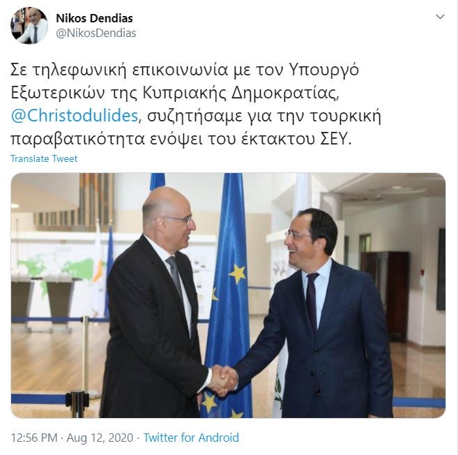 Τηλεφωνική επικοινωνία με τον Κύπριο ομόλογό του, Νίκο Χριστοδουλίδη, είχε ο υπουργός Εξωτερικών Νίκος Δένδιας.