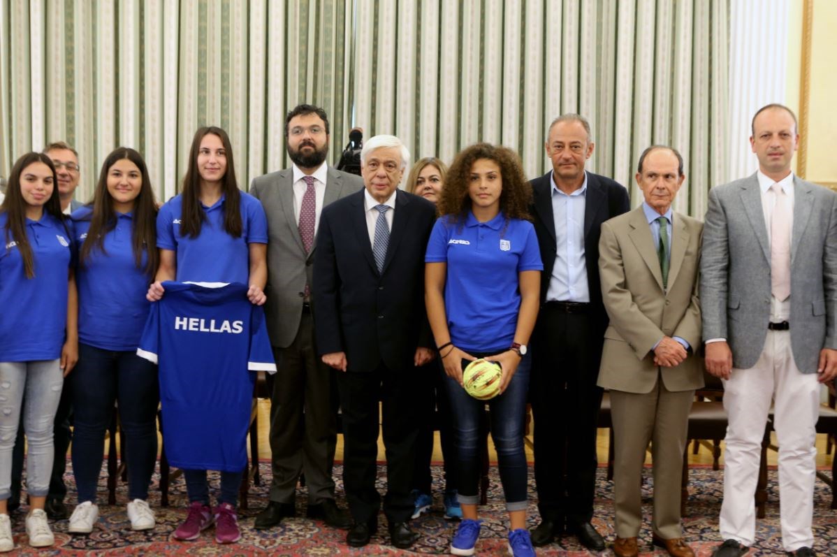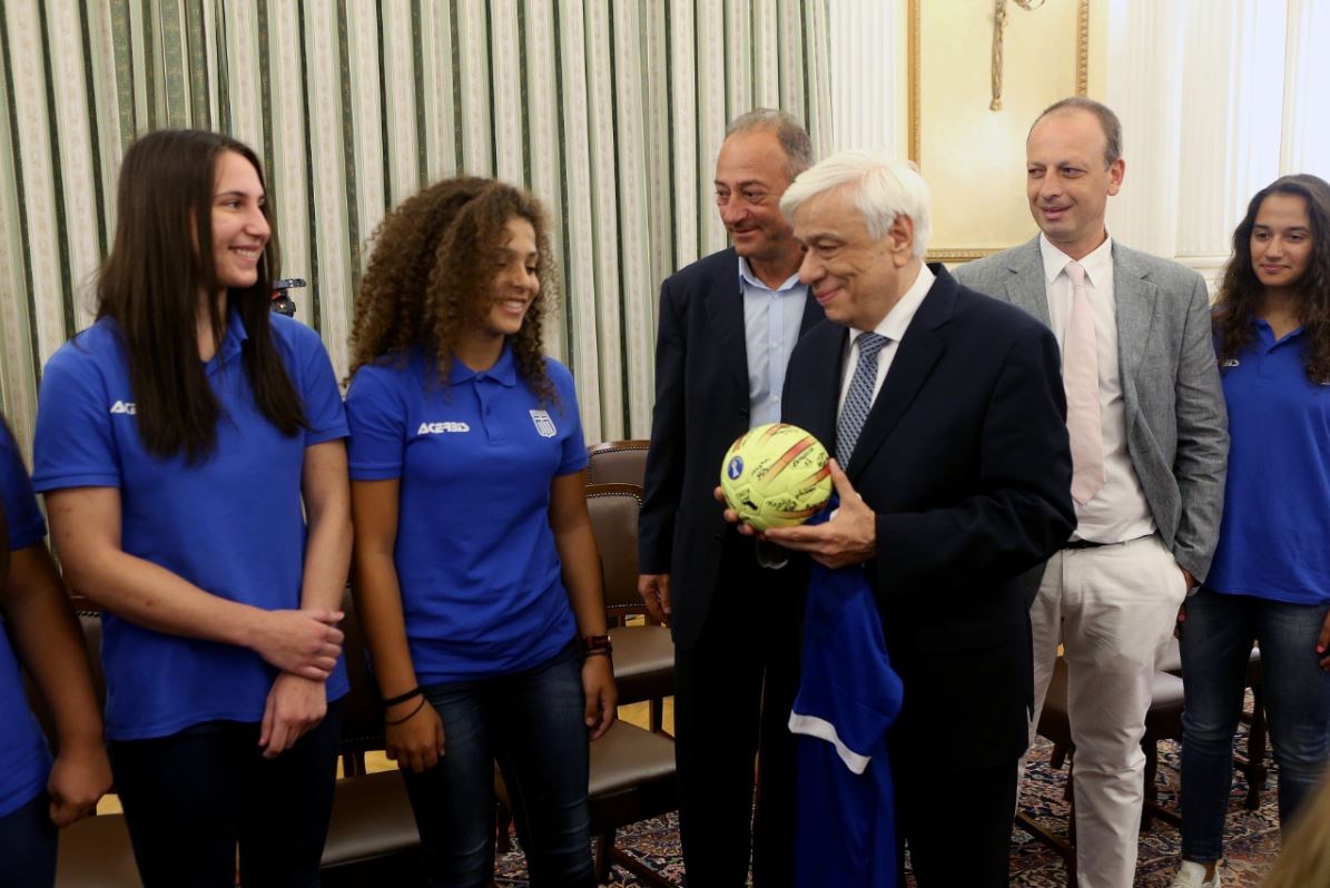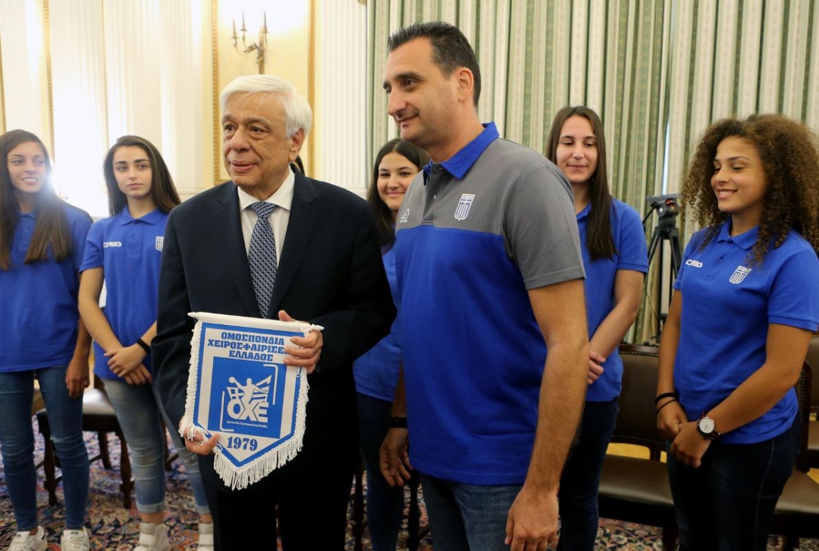 Την εθνική ομάδα νεανίδων χάντμπολ και τη διοίκηση της Ομοσπονδίας Χειροσφαιρίσεως Ελλάδας (ΟΧΕ) υποδέχθηκε ο Πρόεδρος της Δημοκρατίας, Προκόπης Παυλόπουλος, προκειμένου να τους συγχαρεί για την απόφασή τους να μην αγωνιστούν απέναντι στην αντίστοιχη ομάδα της ΠΓΔΜ, στο Ευρωπαϊκό Πρωτάθλημα στα Σκόπια, λόγω της χρήσης του ονόματος “Macedonia” στις φανέλες, αλλά και στο γήπεδο της “οικοδέσποινας” της διοργάνωσης.