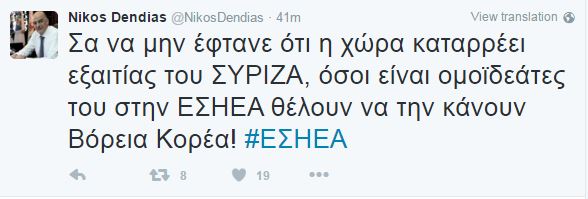 Διαβάστε το αιχμηρό σχόλιο του Νίκου Δένδια στο Twitter.