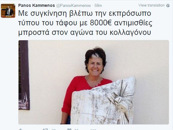 “Με συγκίνηση βλέπω την εκπρόσωπο τύπου του τάφου με 8000€ αντιμισθίες μπροστά στον αγώνα του κολλαγόνου” έγραψε ο πρόεδρος των ΑΝΕΛ.