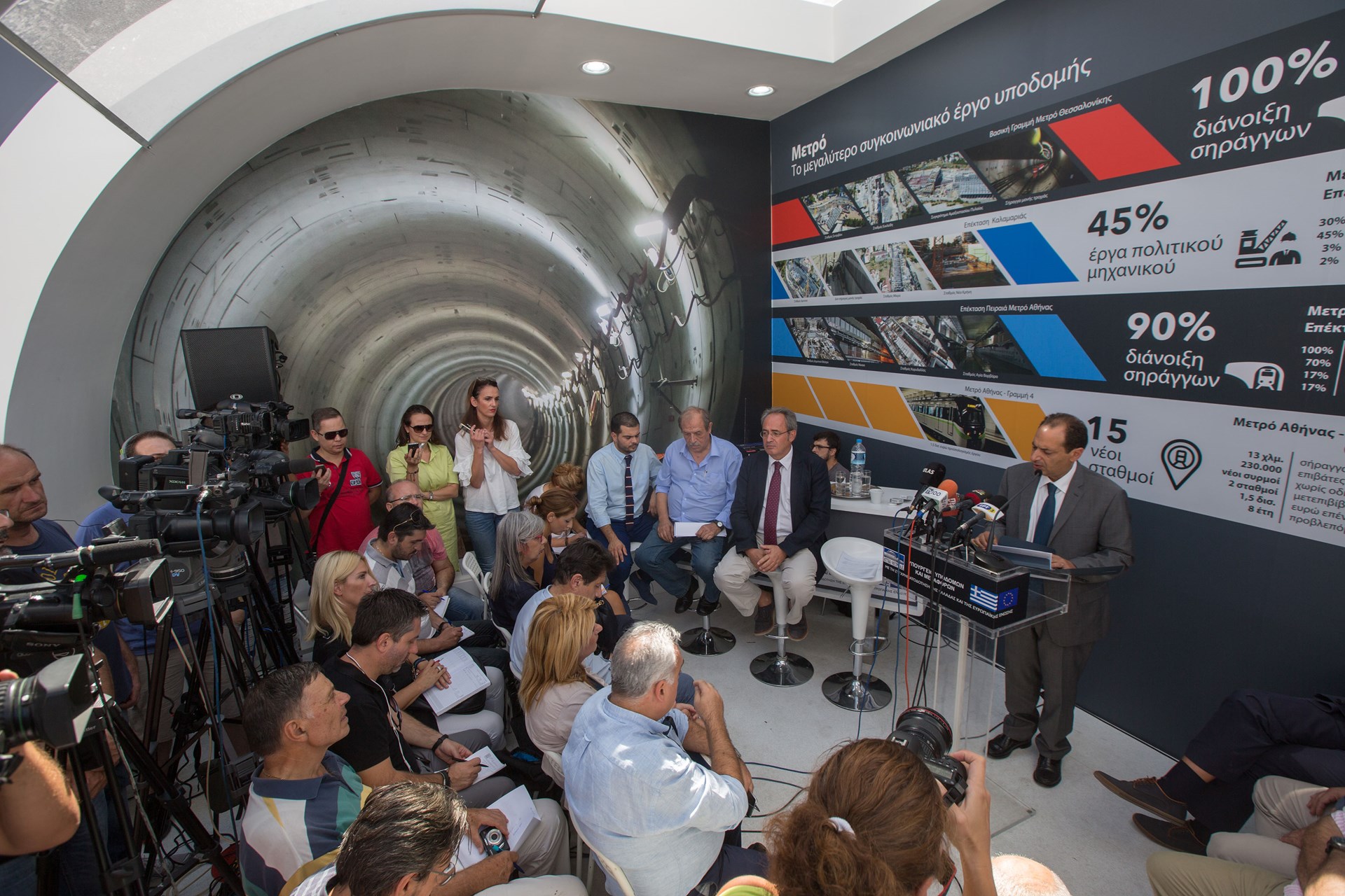 Του χρόνου, την ίδια εποχή, τέτοιο καιρό, θα έχουμε τα βαγόνια μέσα στο κτίριο, μέσα στο κέντρο, και μπορείτε να παρακολουθήσετε το Κέντρο Ελέγχου που θα ελέγχεται από εκεί όλη η λειτουργία του, με το αυτόματο σύστημα που έχει προβλεφθεί για το μετρό Θεσσαλονίκης.