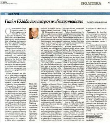 Το άρθρο του Κώστα Καραμανλή για τις ιδιωτικοποιήσεις