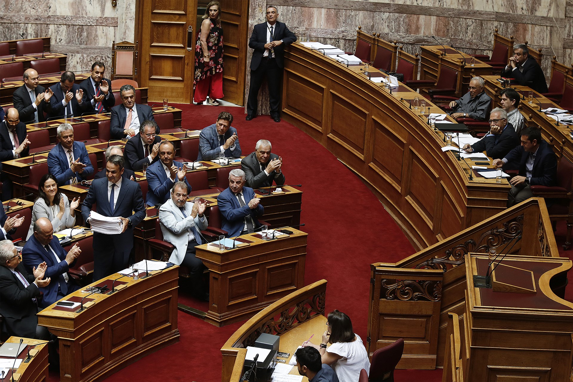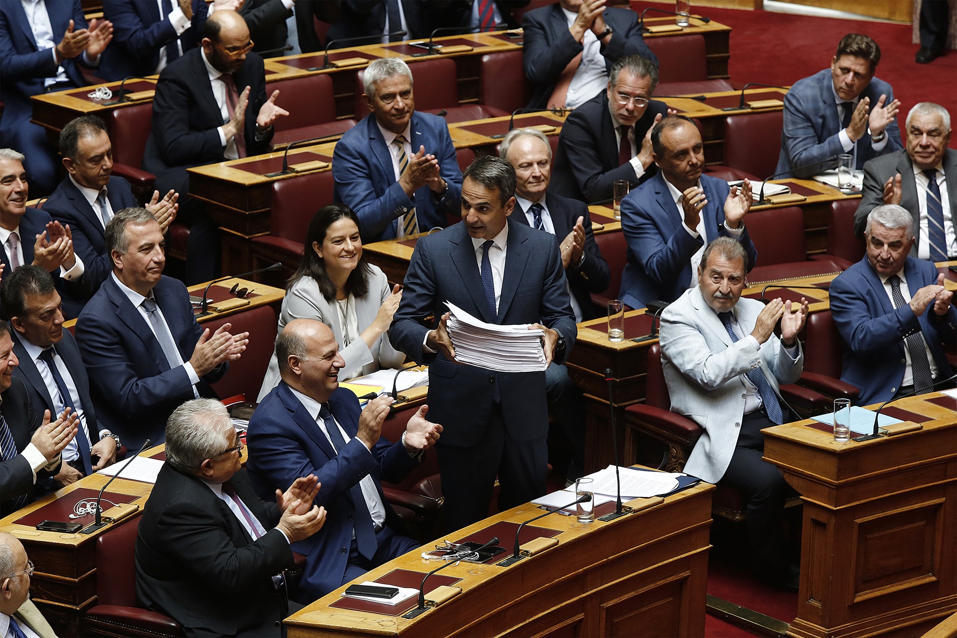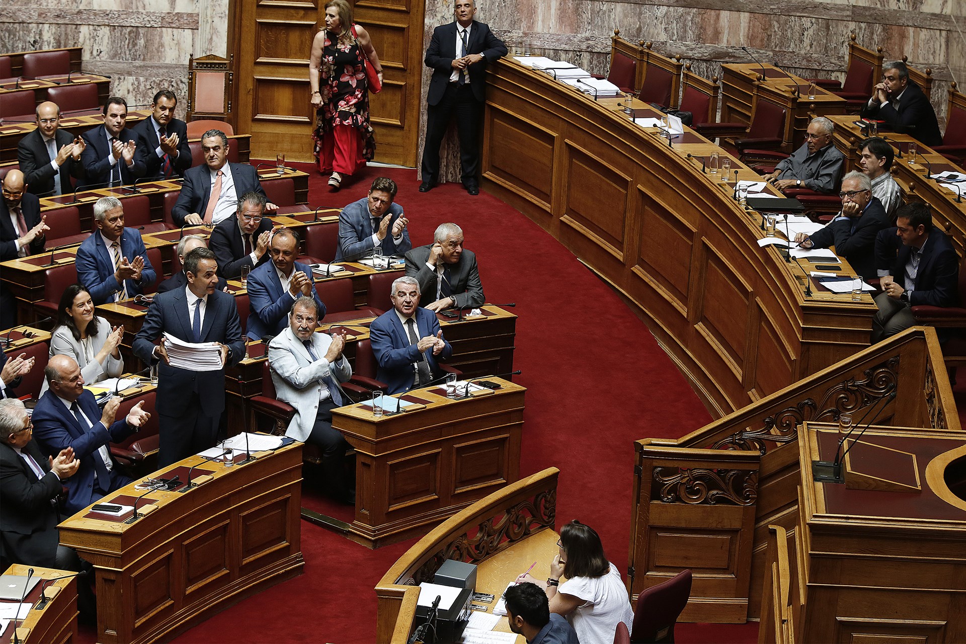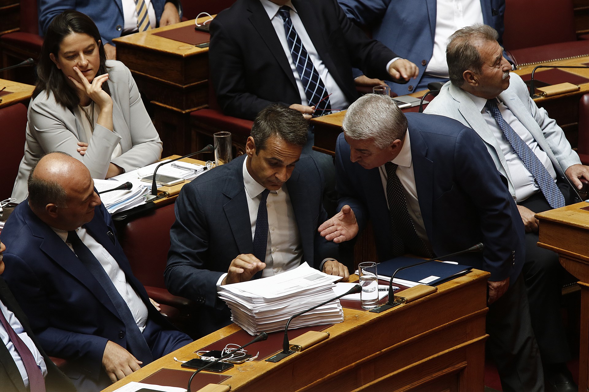“Να ‘τες, εδώ πέρα. Ζήτησα από τους συνεργάτες μου να τις τυπώσουν, κύριε πρόεδρε, και να τις καταθέσω, παρακαλώ στα πρακτικά”, είπε ο κ. Μητσοτάκης.