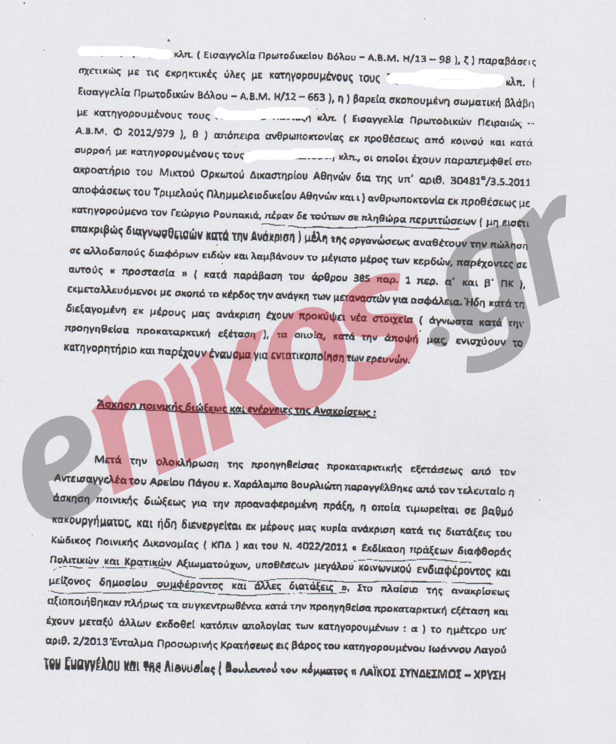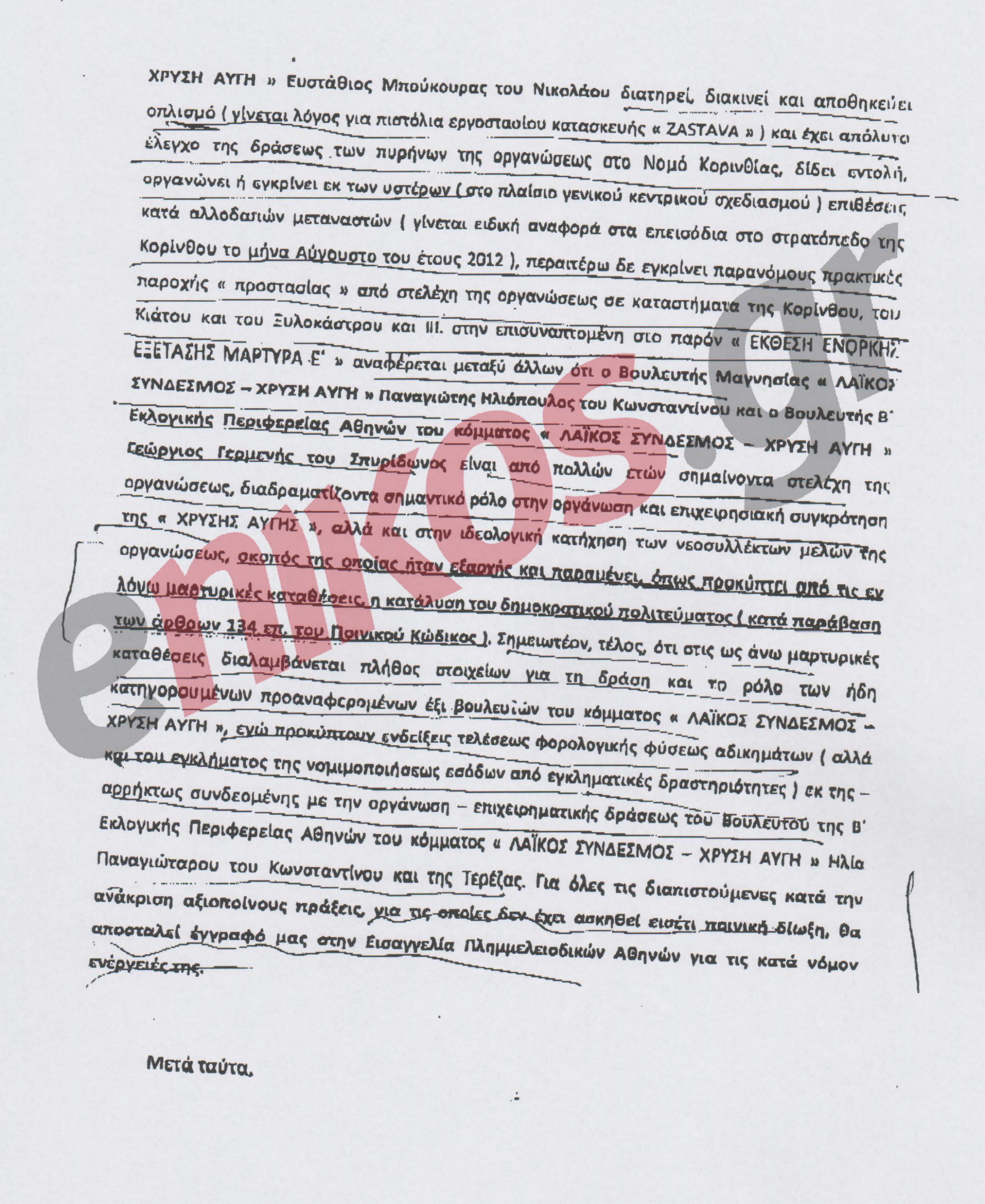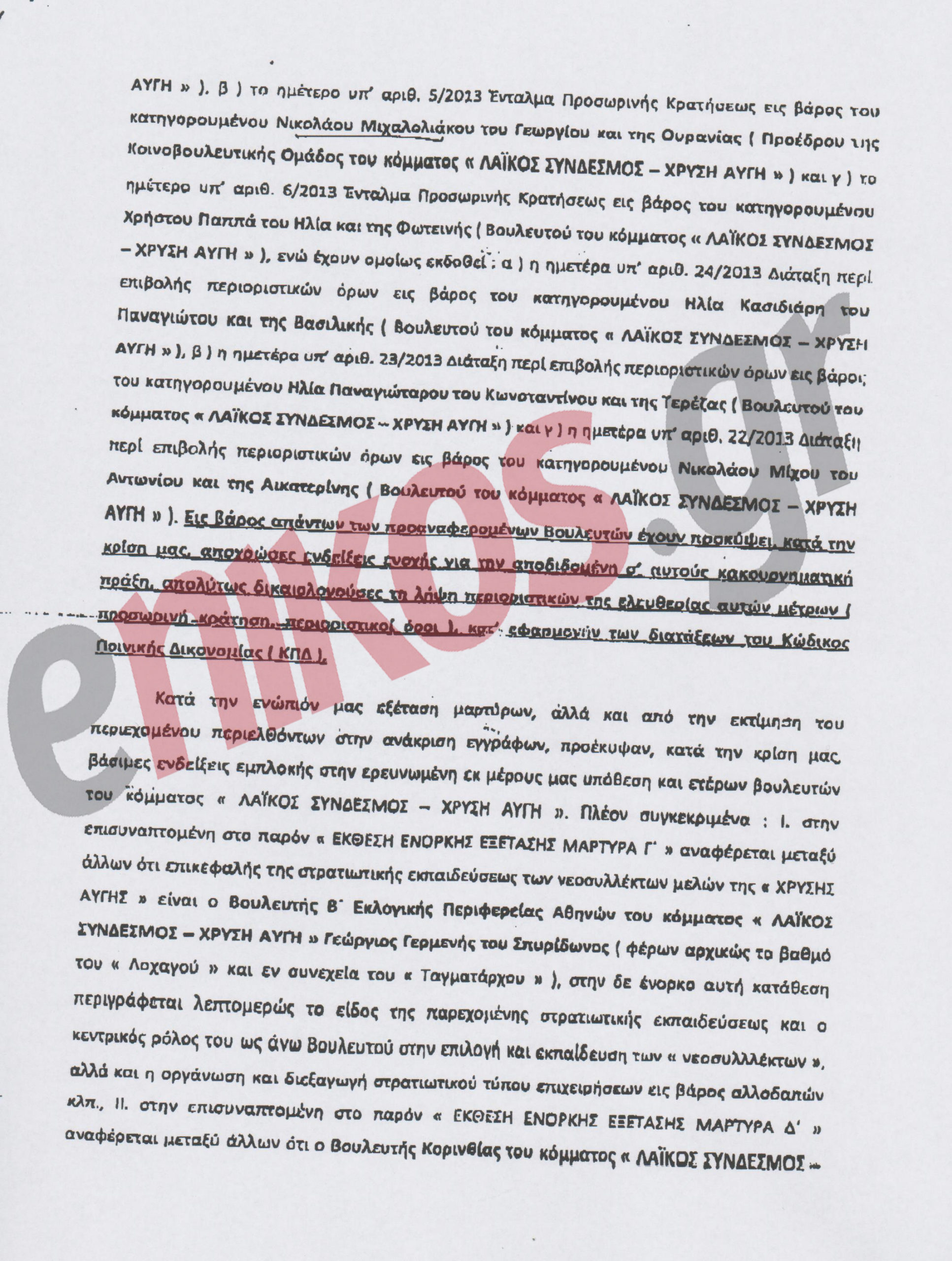Το διαβιβαστικό του Εισαγγελέα για τους βουλευτές της Χ.Α.