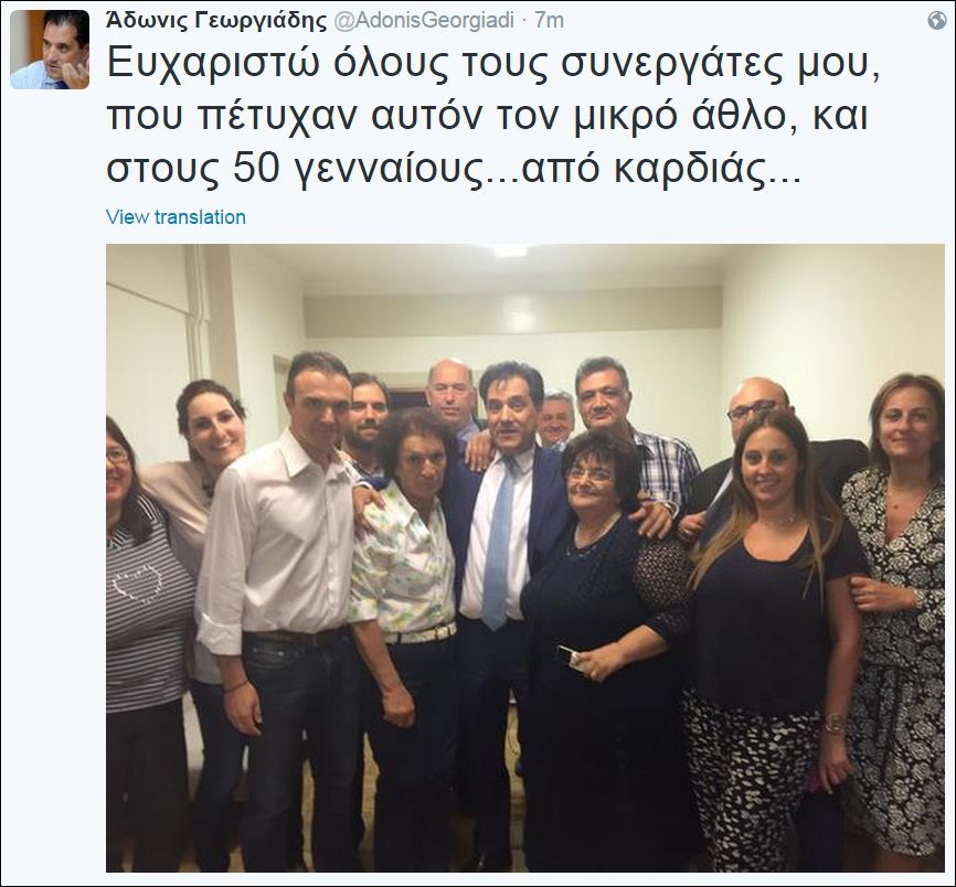 Ο Άδωνις Γεωργιάδης κατάφερε στο… και πέντε να φθάσει στη Συγγρού για να καταθέσει τις υπογραφές για την υποψηφιότητά του. Μετά από αυτόν τον «μικρό άθλο» όπως λέει ο ίδιος, ευχαρίστησε, μέσω twitter, όλους τους συνεργάτες του και τους «50 γενναίους».