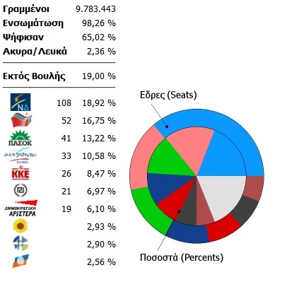 Με ενσωμάτωση που φτάνει στο 98,26% τα ποσοστά των κομμάτων στην επικράτεια διαμορφώνονται αναλυτικά ως εξής: