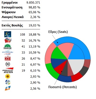 Με ενσωμάτωση που φτάνει στο 98,85% τα ποσοστά των κομμάτων στην επικράτεια διαμορφώνονται αναλυτικά ως εξής:
