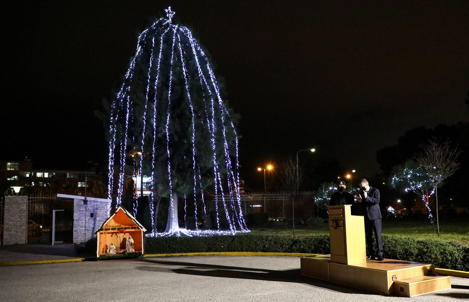 Ο Αρχηγός ΓΕΕΘΑ Στρατηγός Κωνσταντίνος Φλώρος παρέστη στη Φωταγώγηση του Χριστουγεννιάτικου Δένδρου του Στρατοπέδου «ΠΑΠΑΓΟΥ», την οποία τίμησε με την παρουσία του ο Υφυπουργός Εθνικής Άμυνας κ. Αλκιβιάδης Στεφανής και παραβρέθηκαν επίσης ο Αρχηγός ΓΕΑ Αντιπτέραρχος (Ι) Γεώργιος Μπλιούμης, ο Αρχηγός ΓΕΣ Αντιστράτηγος Χαράλαμπος Λαλούσης, ο Αρχηγός ΓΕΝ Αντιναύαρχος Στυλιανός Πετράκης ΠΝ.