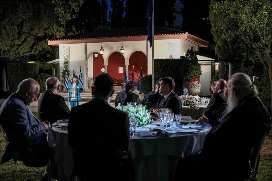 Επίσημο δείπνο στον κήπο του Προεδρικού Μεγάρου παρέθεσε η Πρόεδρος της Δημοκρατίας Κατερίνα Σακελλαροπούλου με αφορμή την επέτειο των 40 ετών από την ένταξη της Ελλάδος στις Ευρωπαϊκές Κοινότητες.