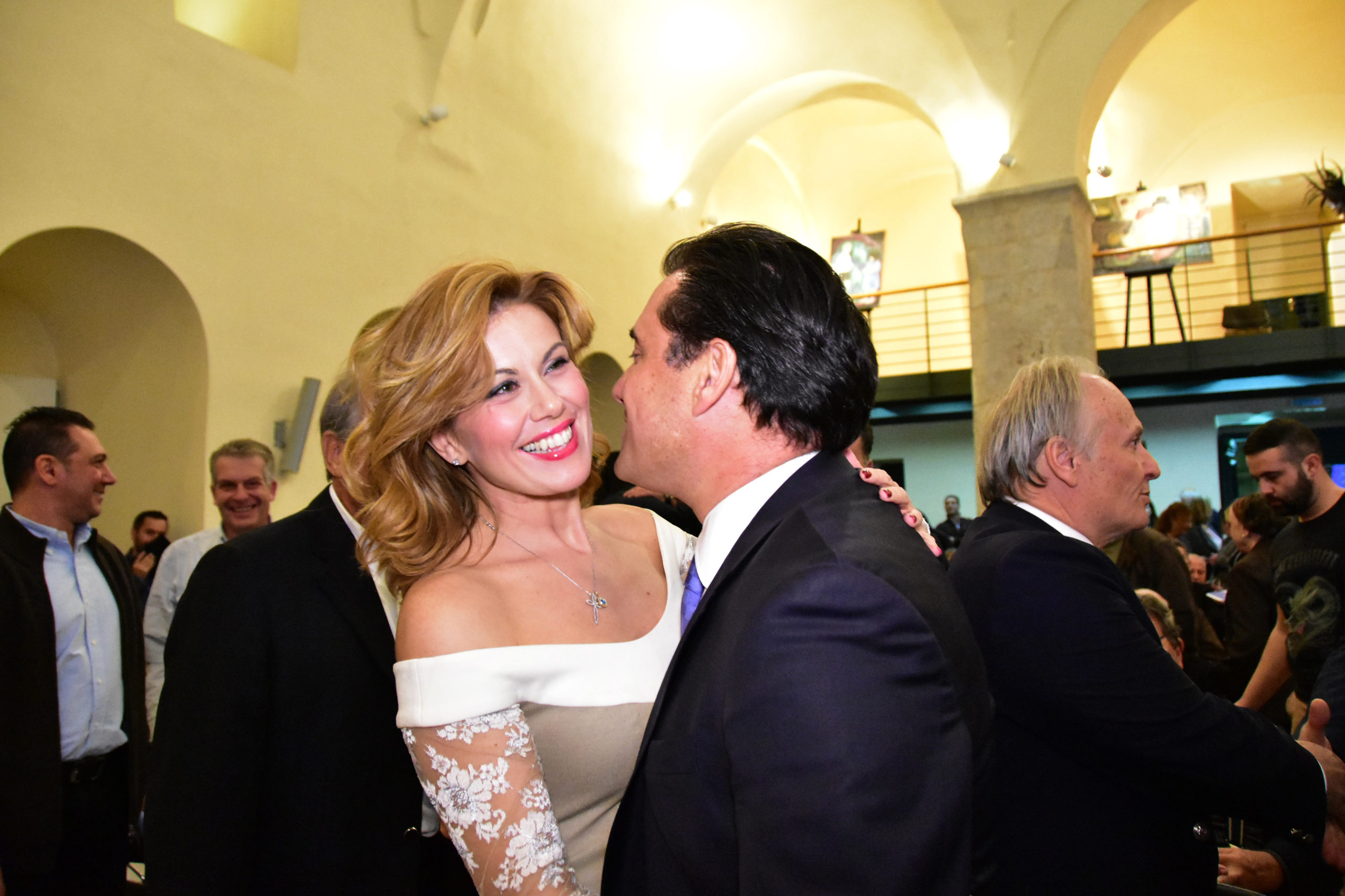 Φυσικά, η Ευγενία Μανωλίδου δεν θα μπορούσε να λείπει από την επίσκεψη του κ. Γεωργιάδη στο Ναύπλιο. Μάλιστα ο υποψήφιος πρόεδρος της ΝΔ κατά τη διάρκεια της εκδήλωσης, έδωσε ένα φιλί στο μάγουλο στη σύζυγό του.