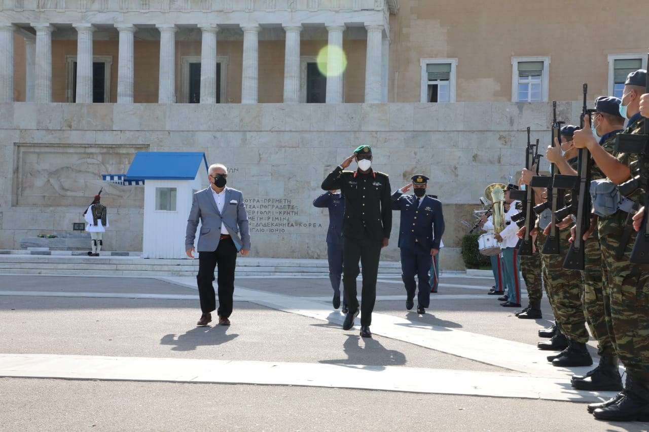 Την Τετάρτη, σε μία είδηση που πέρασε στα «ψιλά», ο Αρχηγός ΓΕΕΘΑ Κωνσταντίνος Φλώρος υποδέχθηκε τον Αρχηγό του Γενικού Επιτελείου των Ενόπλων Δυνάμεων της Ρουάντα Στρατηγό Jean Bosco Kazura, που πραγματοποιεί από την Κυριακή 11 Ιουλίου 2021 πενθήμερη επίσημη επίσκεψη στην Αθήνα.