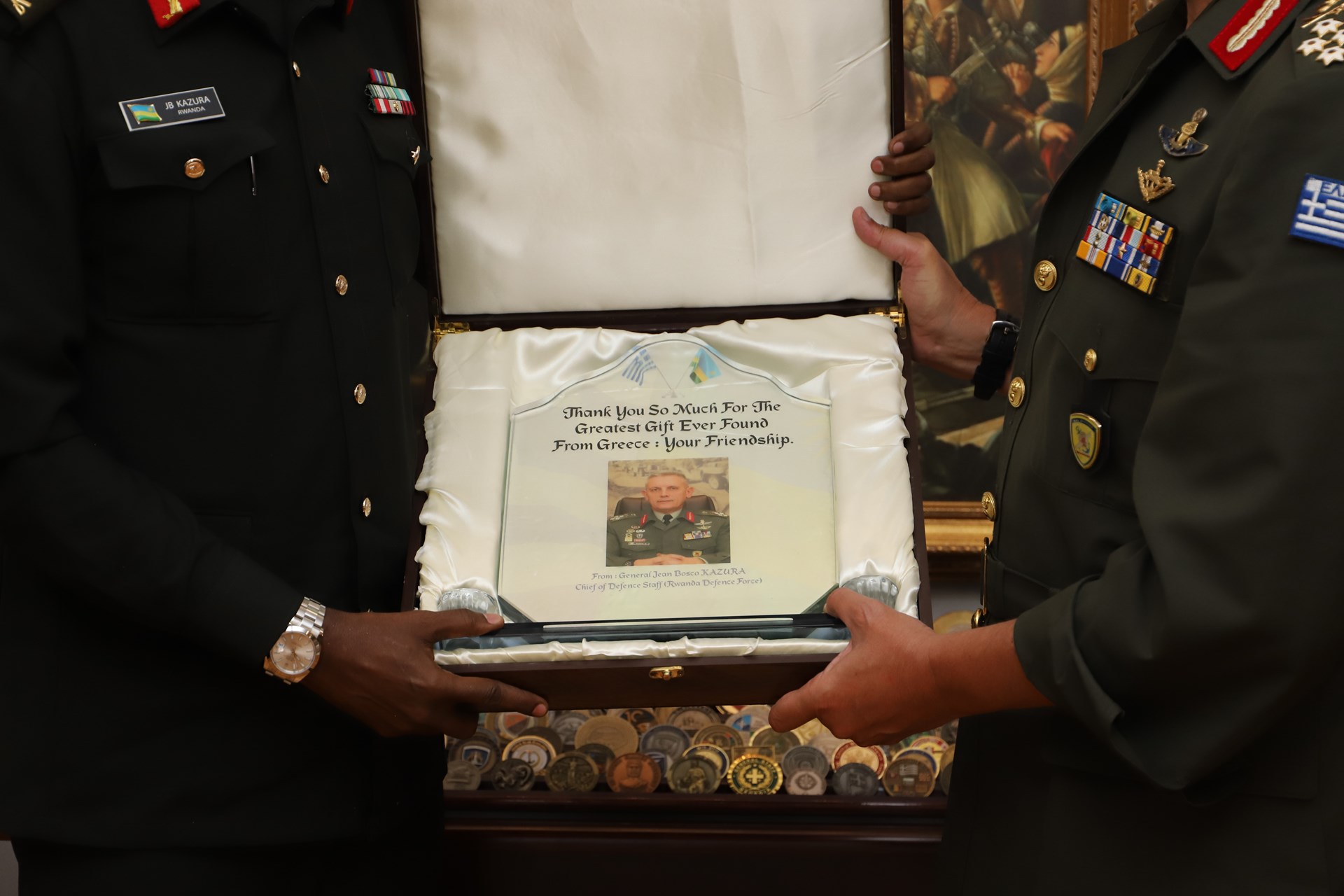 Επιπρόσθετα ο Αρχηγός ΓΕΕΘΑ σημείωσε τον καθοριστικό ρόλο που διαδραματίζουν οι ΕΔ της Ελλάδας και της Ρουάντα για την διασφάλιση της σταθερότητας και της ειρήνης στην Μεσόγειο και την Κεντρική Αφρική αντίστοιχα, ενώ τόνισε το ενδιαφέρον της Χώρας μας ως προς την αναβάθμιση των σχέσεων και της μεταξύ τους συνεργασίας με τη συμμετοχή στρατιωτικού προσωπικού της Ρουάντα σε συνεκπαιδεύσεις και σε κοινές δράσεις, καθώς και με την παροχή δυνατότητας σε Αξιωματικούς, Υπαξιωματικούς και Μαθητές Παραγωγικών Σχολών να φοιτήσουν σε Ελληνικά Στρατιωτικά Ιδρύματα και Εκπαιδευτικά Κέντρα.