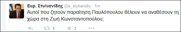 «Αυτοί που ζητούν παραίτηση Παυλόπουλου θέλουν να αναθέσουν τη χώρα στη Ζωή Κωνσταντοπούλου;», έγραψε ο βουλευτής της Νέας Δημοκρατίας.