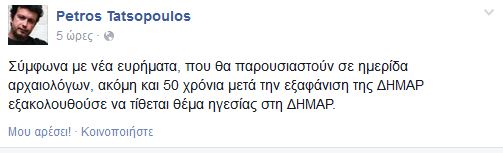 Τις εσωκομματικές εξελίξεις στη ΔΗΜΑΡ σχολιάζει με καυστικό τρόπο μέσω Facebook ο Πέτρος Τατσόπουλος.